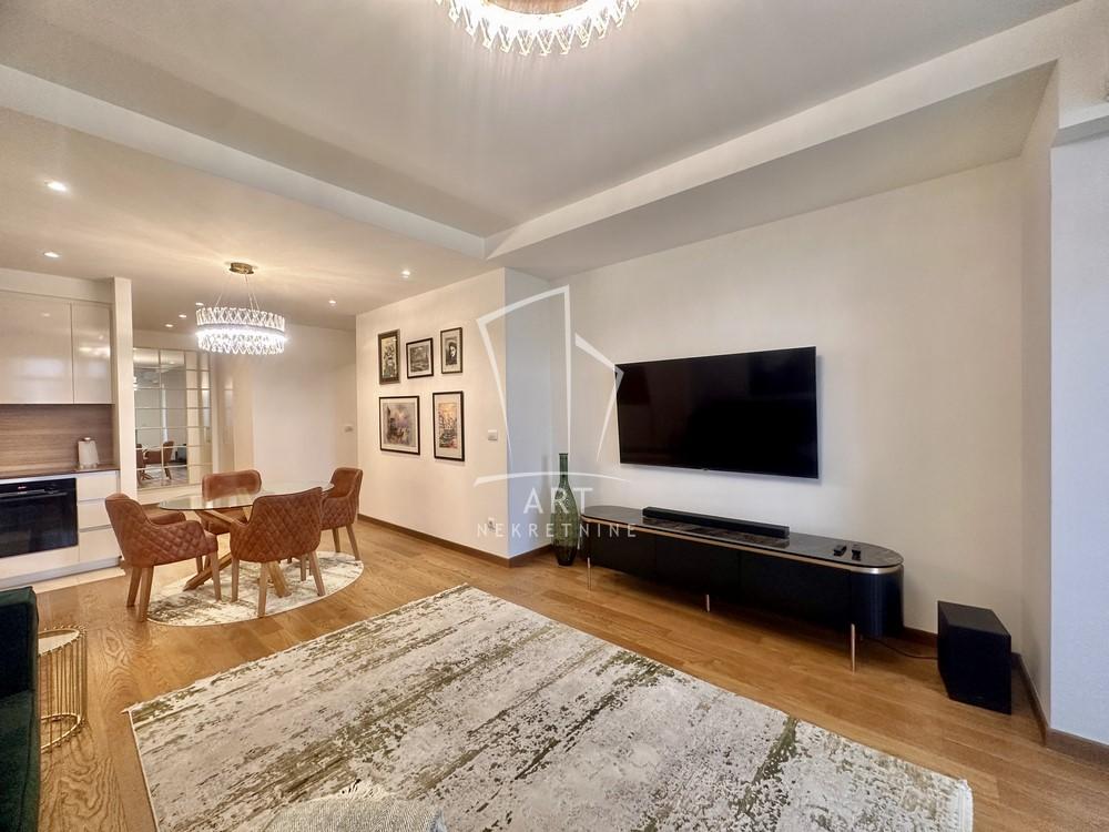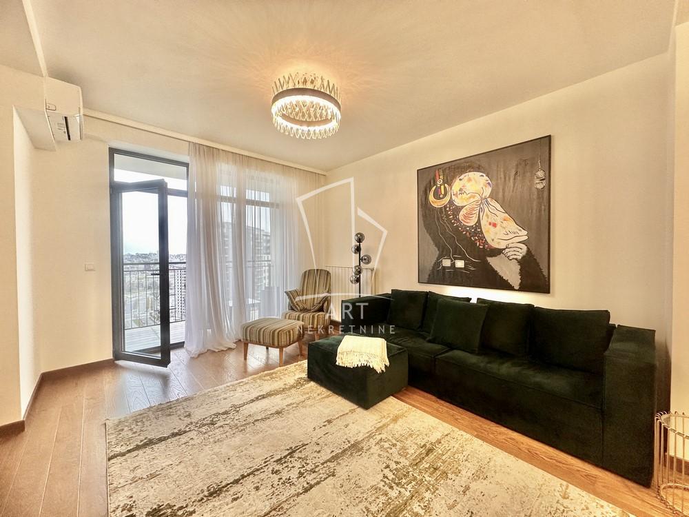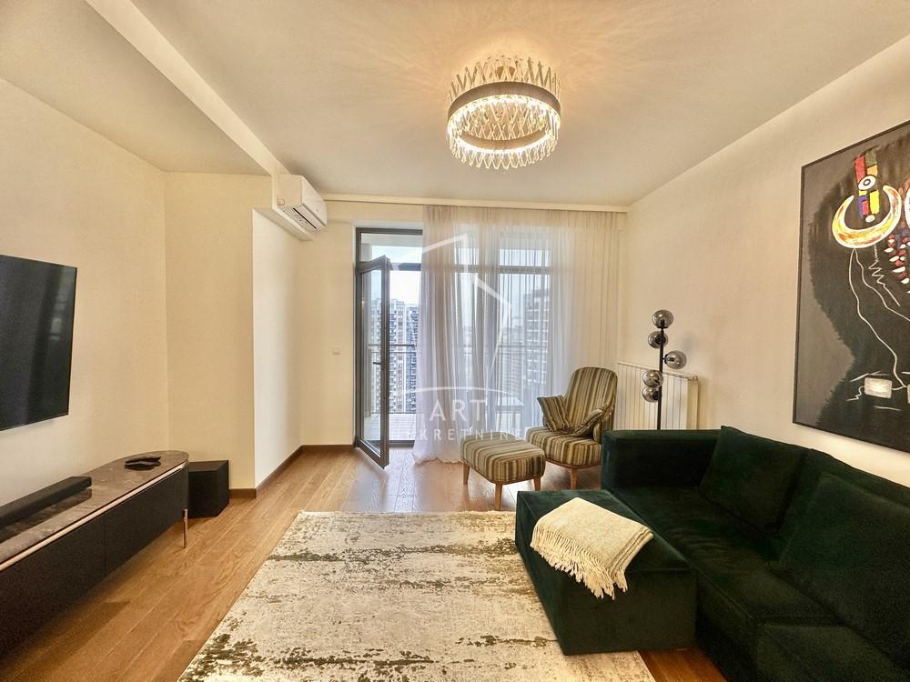 Opis: Komforana nepokretnost na atraktivnoj lokaciji u zgradi BW Arcadia, kvalitetno i biranim detaljima nameštena i opremljena.