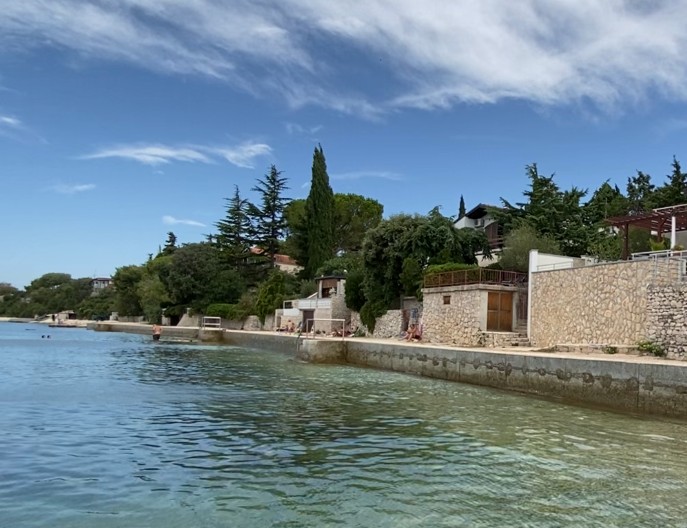 Opis (Engleski): For sale is a ground-floor house located in an exceptional location in the first row to the sea and promenade not far from Sukosan, Zadar area. It is situated in a quiet part of a smaller tourist town, surrounded by greenery, just about twenty kilometers from Zadar and the international airport. This house offers a unique opportunity to create an ideal retreat or an investment in an attractive zone of the Adriatic coast. The living area of the house is 88 m2 and it extends over a plot of 683 m2. It consists of three bedrooms, a bathroom, a storage room, and an open-plan living room with a kitchen that leads to a large terrace, a perfect place to enjoy the sea view and the scents of the Mediterranean. Although the house requires a complete renovation, its exceptional position and harmonious yard offer great potential to create a charming summer house or a family home for year-round enjoyment....