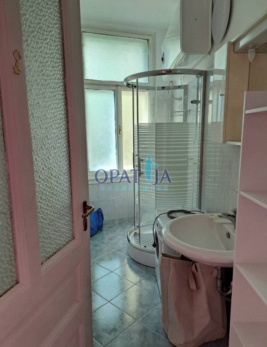 Opis: U centru Opatije, u trećem redu od mora i nadomak svih sadržaja, nudimo potpuno opremljen i namješten stan za dugoročni najam. Smješten je u visokom prizemlju prekrasne secesijske vile s ograđenom okućnicom koja pruža potpunu privatnost. Stan se sastoji od dvije spavaće sobe, kuhinje, blagovaonice, dnevnog boravka, kupaonice s WC-om, dodatnog WC-a, garderobe i loggie s prekrasnim pogledom na more—idealnim za svakodnevno opuštanje. Opremljen je optičkim internetom, MAX TV-om, klimatizacijom te dodatnim norveškim radijatorima, a najveća prednost je vlastito parkirno mjesto u srcu Opatije, kao i blizina plaže i šetnice Lungomare. Kad parkirate automobil možete sve pješke obaviti: kupovinu, banku, kupovinu namirnica, teretanu, šetnju, ljeti plažu....Također u blizini je autobusna stanica u oba smjera. Ne propustite! Prilikom ulaska u najam potpisuje se ugovor i plaća polog + prva najamnina. Stan je sunčan, s lijepim pogledom i idealan za život bez automobila—plaža, sportska dvorana, autobusna stanica, šetnica Lungomare i svi važniji sadržaji nalaze se u neposrednoj blizini....
