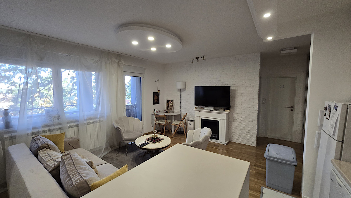 Opis: Na prelepoj lokaciji na Zvezdari, okruzenoj zelenilom i mirom, izdaje se svetao i moderno uredjen