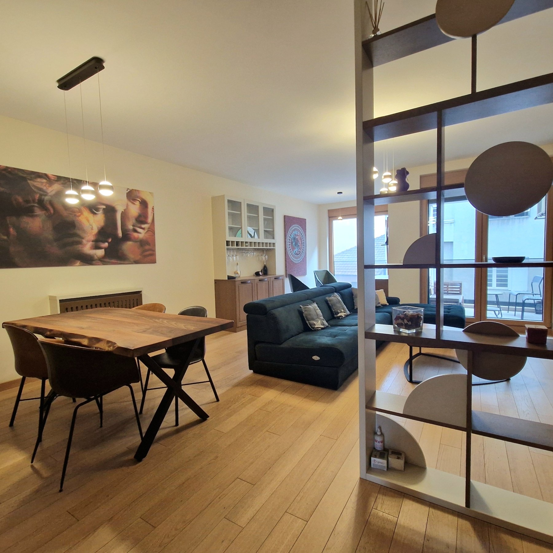 na priblizno impresivnih 50m2, obuhvatajuci dnevni boravak, trpezariju, modernu