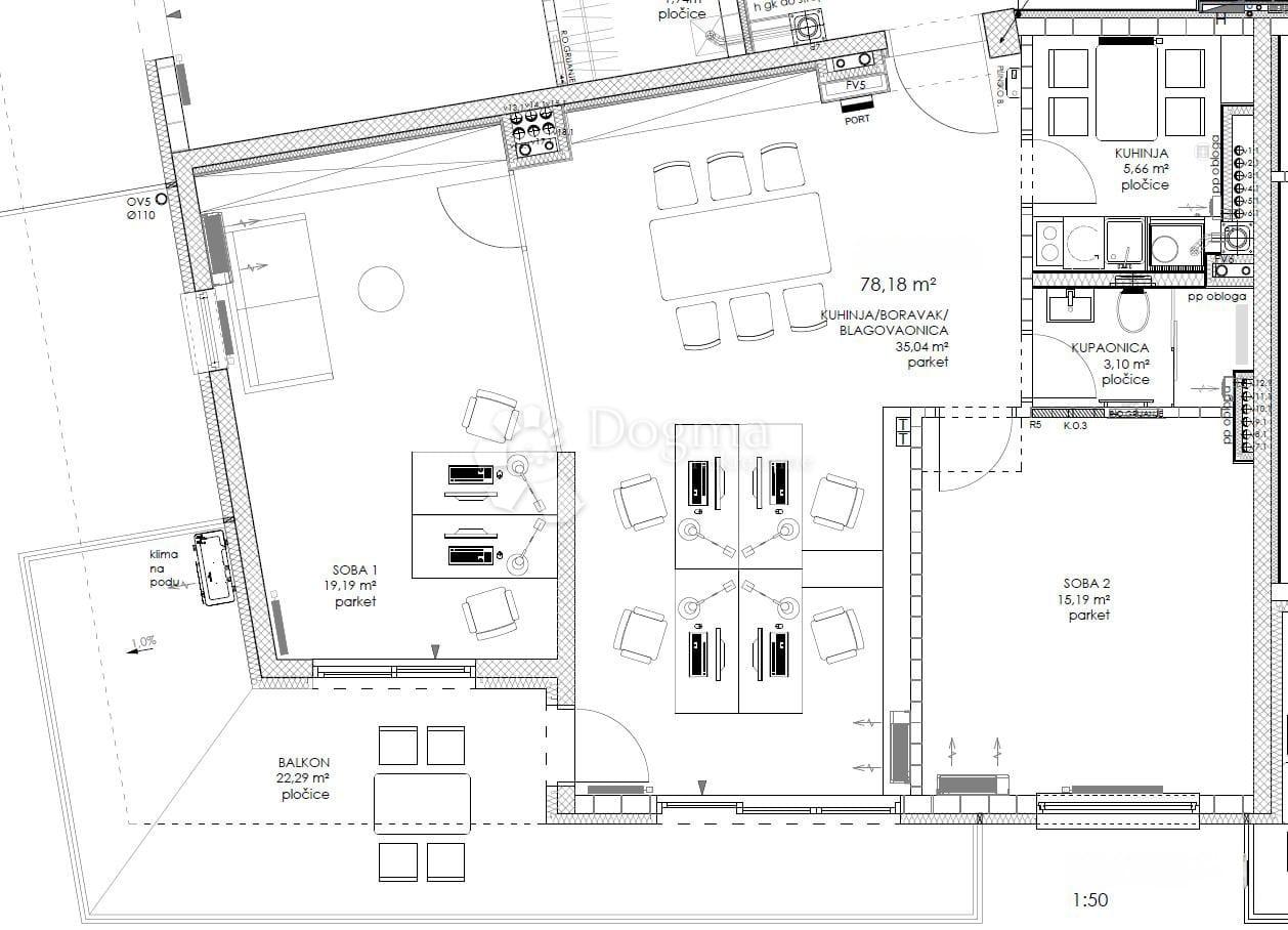 Zahvaljujući modernom uređenju i funkcionalnom rasporedu, prostor je idealan za uredske djelatnosti, agencije, IT tvrtke, knjigovodstvene servise i slične poslovne namjene.