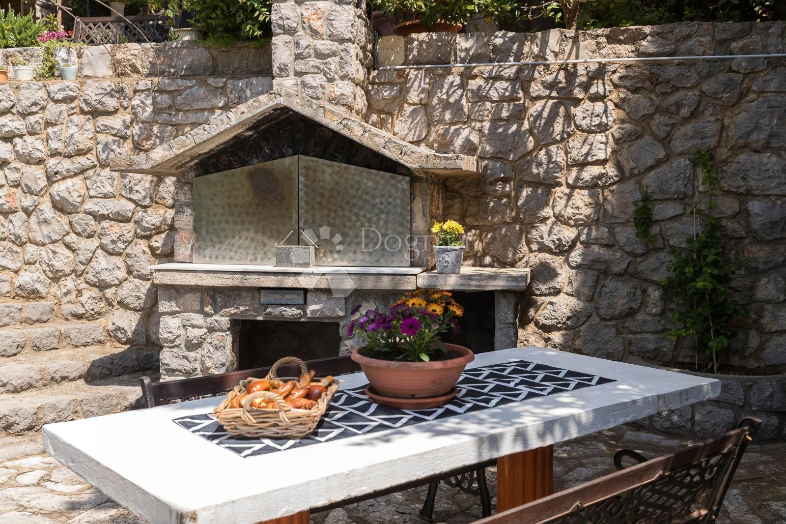 Interijer odiše toplinom i funkcionalnošću – prostorije su svijetle, dobro povezane, a veliki broj terasa omogućuje uživanje u pogledu i prirodnom ambijentu. Gosti i stanari mogu se opustiti u lijepo uređenoj i prostranoj okućnici, gdje se nalaze vrt, prostor za sjedenje, roštilj i mjesta za opuštanje pod suncem ili u hladu mediteranskog zelenila.