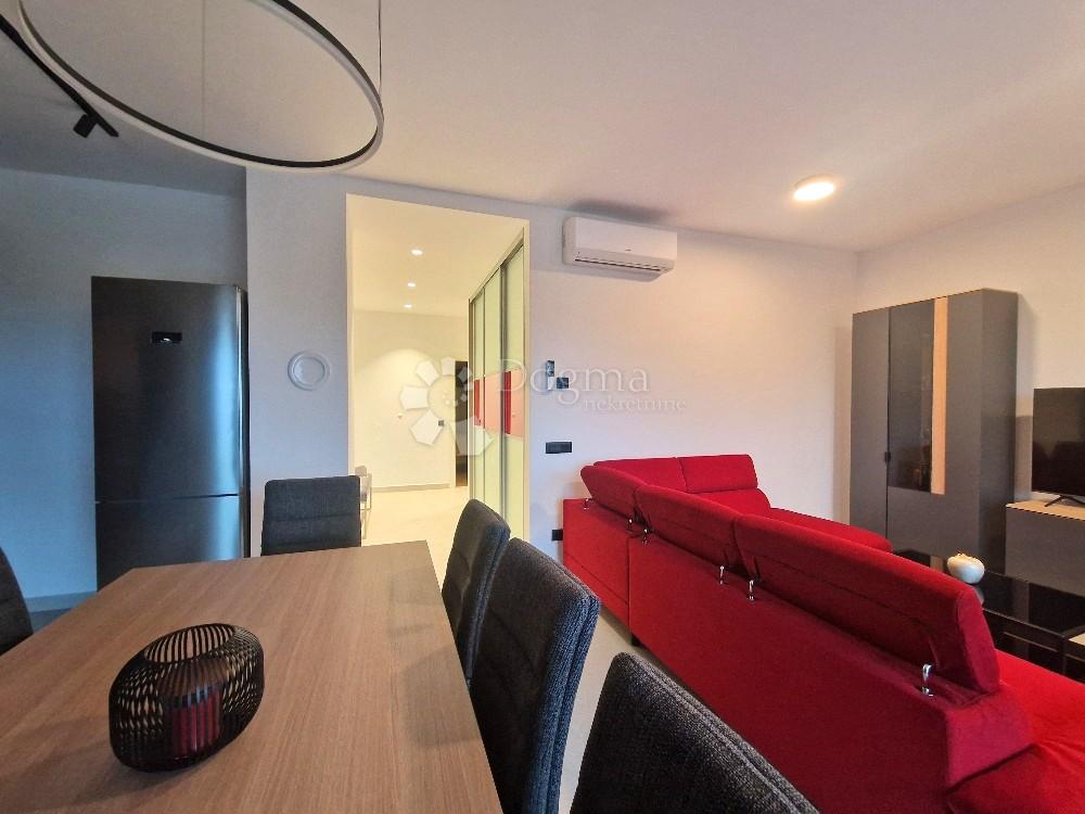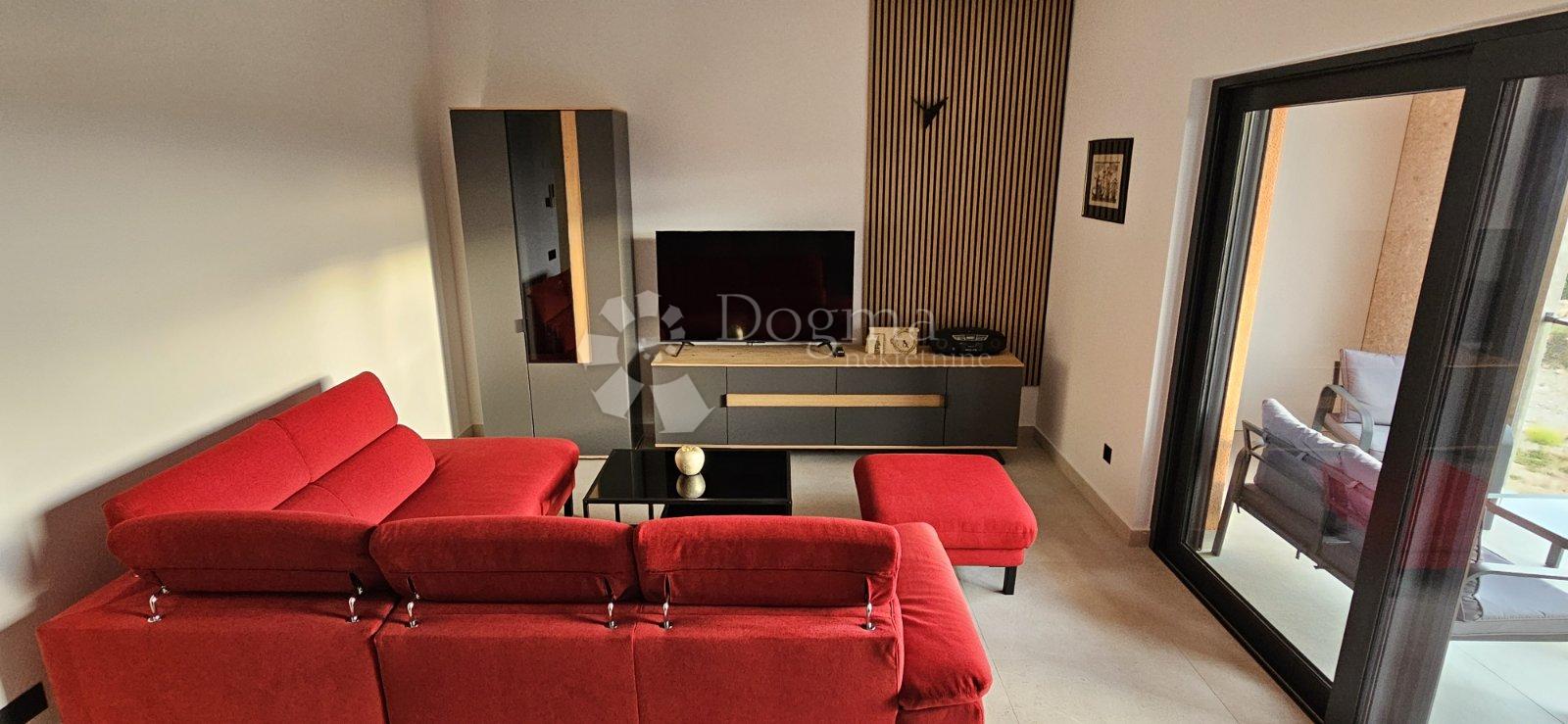Stan je potpuno nov, nikad useljen. Opremljen i namješten svim potrebnim stvarima za ugodan život. Vrlo kvalitetni kuhinjski uređaji, perilica ,sušilica te manji kuhinjski aparati.