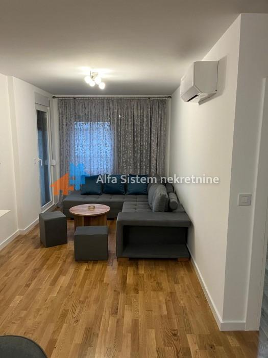 Sastoji se od prostranog dnevnog boravka sa kuhinjom i trpezarijom u open-space konceptu, dve odvojene spavaće sobe, kupatila i terase. Stan je kompletno namešten, sa potpuno novim nameštajem i belom tehnikom, i odmah je useljiv.