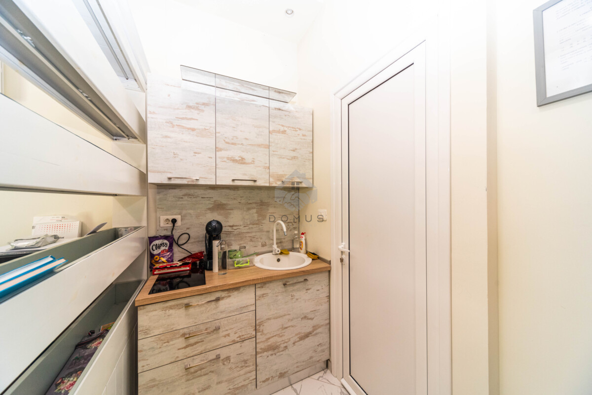 Poslovni prostor je organizovan na dva nivoa koji su povezani unutrašnjim stepenicama: prizemlje (33m2): sastoji se od jedne veće prostorije, čajne kuhinje i toaleta i suteren (68m2): dvije odvojene prostorije koje omogućavaju fleksibilno prilagođavanje rasporeda i namjene.