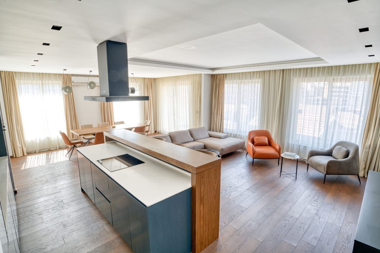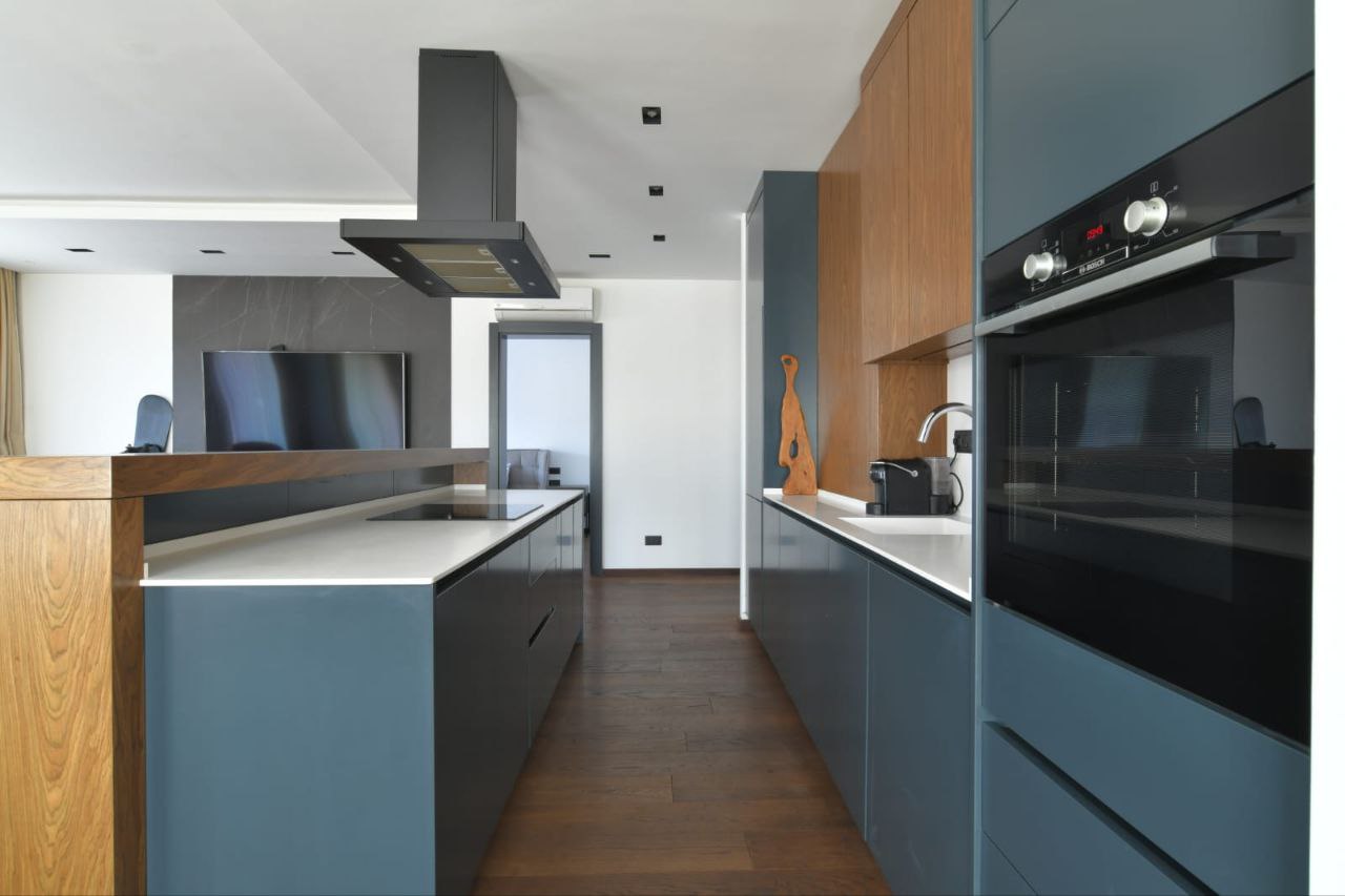 – Prostrani dnevni boravak sa kuhinjom, mašina za suđe, rerna, veliki frižider, kompletno posuđe