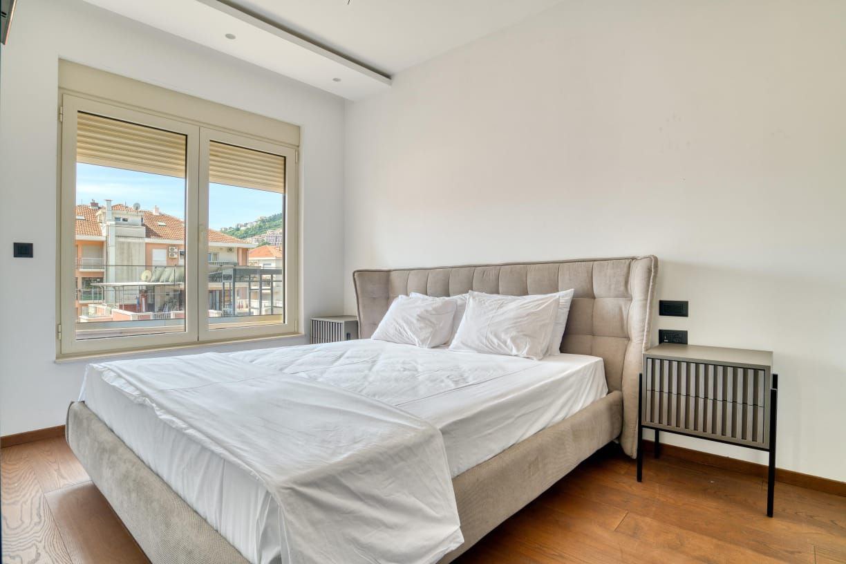 Iznajmljuje se nov, prostran i moderan stan u centru Budve, u blizini kafića Acacia. Stan je potpuno opremljen za udoban boravak.