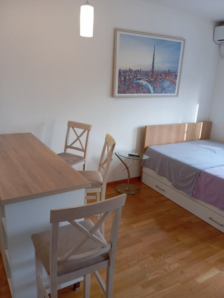 Garsonjera je kompletno, lijepo namještena, veoma atraktivna za iznajmljivanje.