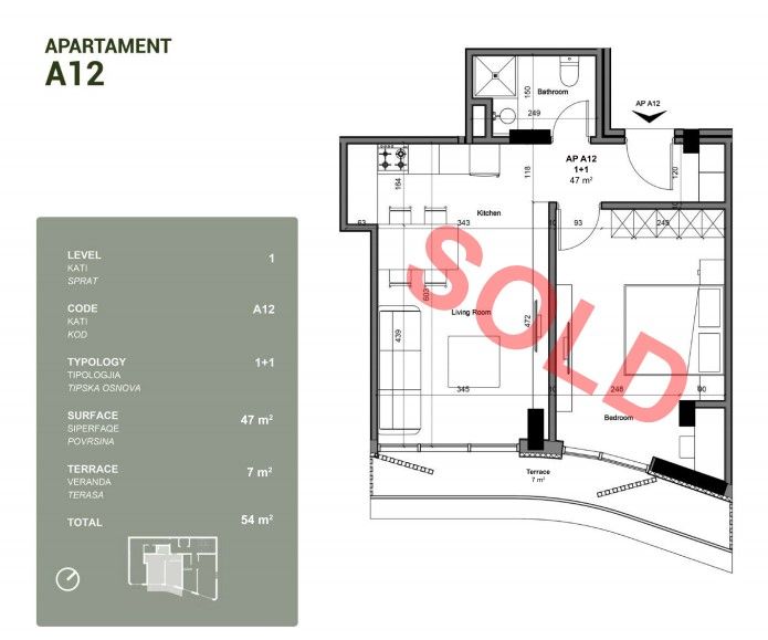 Opis: Prodaje se jednosoban stan u izgradnji 54m2 u luksuznom kompleksu Liman Olive u Ulcinju. Stan posjeduje 47m2, i terasu od 7m2, a pozicioniran je na prvom spratu. Zgrada je u izgradnji, planirani rok za useljenje je januar 2026. Struktura stana: ulazni hodnik, dnevni boravak sa kuhinjom, spavaća soba, kupatilo i terasa. Raspoered prostorija je idealan i prostor je dosta dobro iskorišćen.Smješten na Limanu II, Ulcinj, Crna Gora, Oliva Park Rezidens nudi savršen spoj primorskog mira i modernog načina života. Bez obzira da li tražite dom iz snova, pametnu investiciju ili odmor pored plaže, Oliva Park je vaša idealna destinacija.