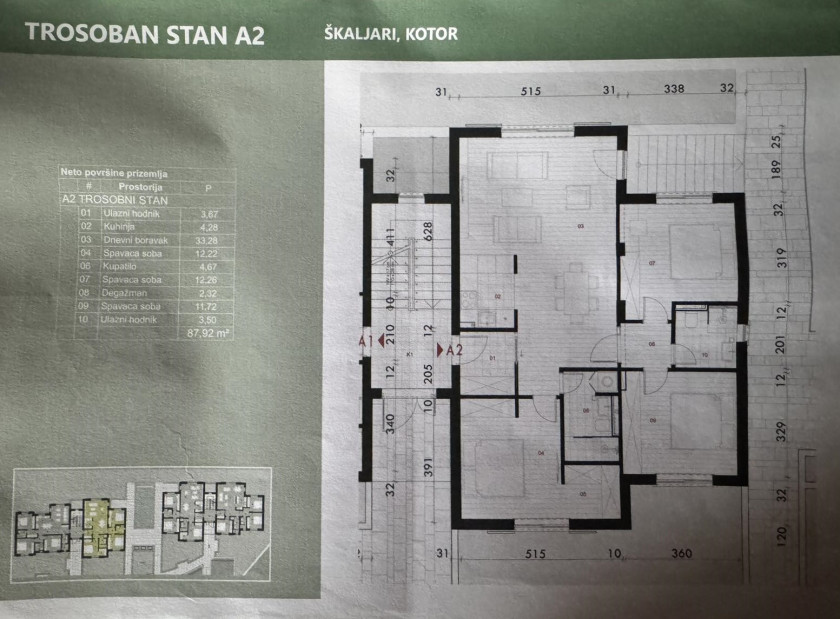 Trosoban stan površine 87,92 m².