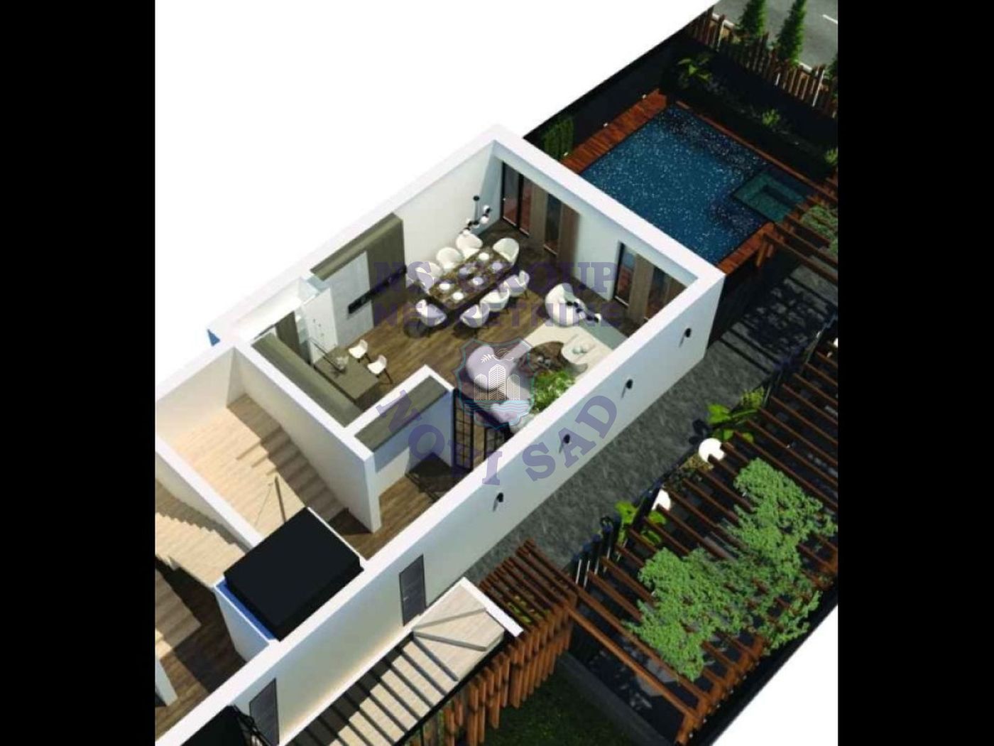 Opis: ID: 508368 - kon.tel. 069/2244173 *** Predstavljamo vam luksuzni objekat u izgradnji. Na odličnoj lokaciji, u neposrednoj okolini se nalazi vrtić, park, osnovna srednja škola, dom zdravlja i sav ostali sadržaj neophodan za život. Ova urbana vila poseduje tri stana u zgradi, odlično je pozicionirana u mirnom i ušuškanom delu Cara Dušana. Uz stan ide i ostava od 34m2 i garaža od 45m2 u suterenu zgrade. Takođe i prostrano dvorište od 148m2 sa bazenom u prizemlju, kao i zelenu terasu na spratu. U prizemlju imamo dnevni boravak sa trpezarijom i kuhinjom, kao i izlaz na pomenutu terasu, wc i ostavu. Na gornjoj etaži se nalaze spavaće sobe od kojih svaka ima svoje kupatilo. Rok završetka: Februar 2024. Sve je odličnog kvaliteta. Za više informacija nazovite naše agente prodaje.