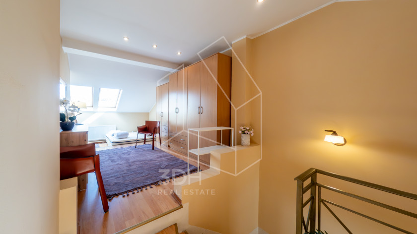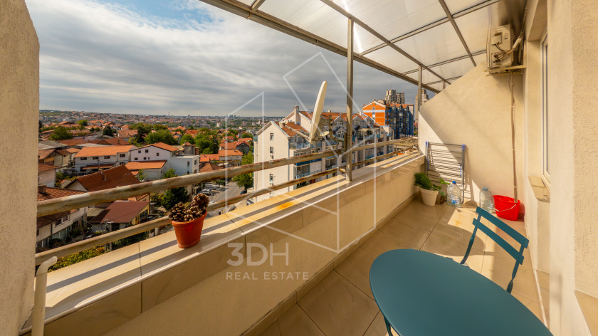 Opis: Stan se nalazi u mirnoj, slepoj ulici bez saobraćajne gužve, u zgradi sa uredno održavanim ulazom i dva lifta. Dvostrana orijentacija (jugozapad–severoistok) i krovni prozori, obezbeđuju obilje prirodnog svetla tokom celog dana. Poseduje prostranu natkrivenu terasu sa prelepim panoramskim pogledom koji se pruža od Avale do Istočnih kapija Beograda.