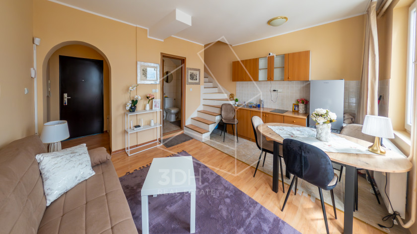 • Stan ima 58m2 gazne površine, a 3m2 su pod kosinama ispod 1.6m visine. U spavaćem delu (oko 1,5m2) i u toaletu (oko 1,5m2)