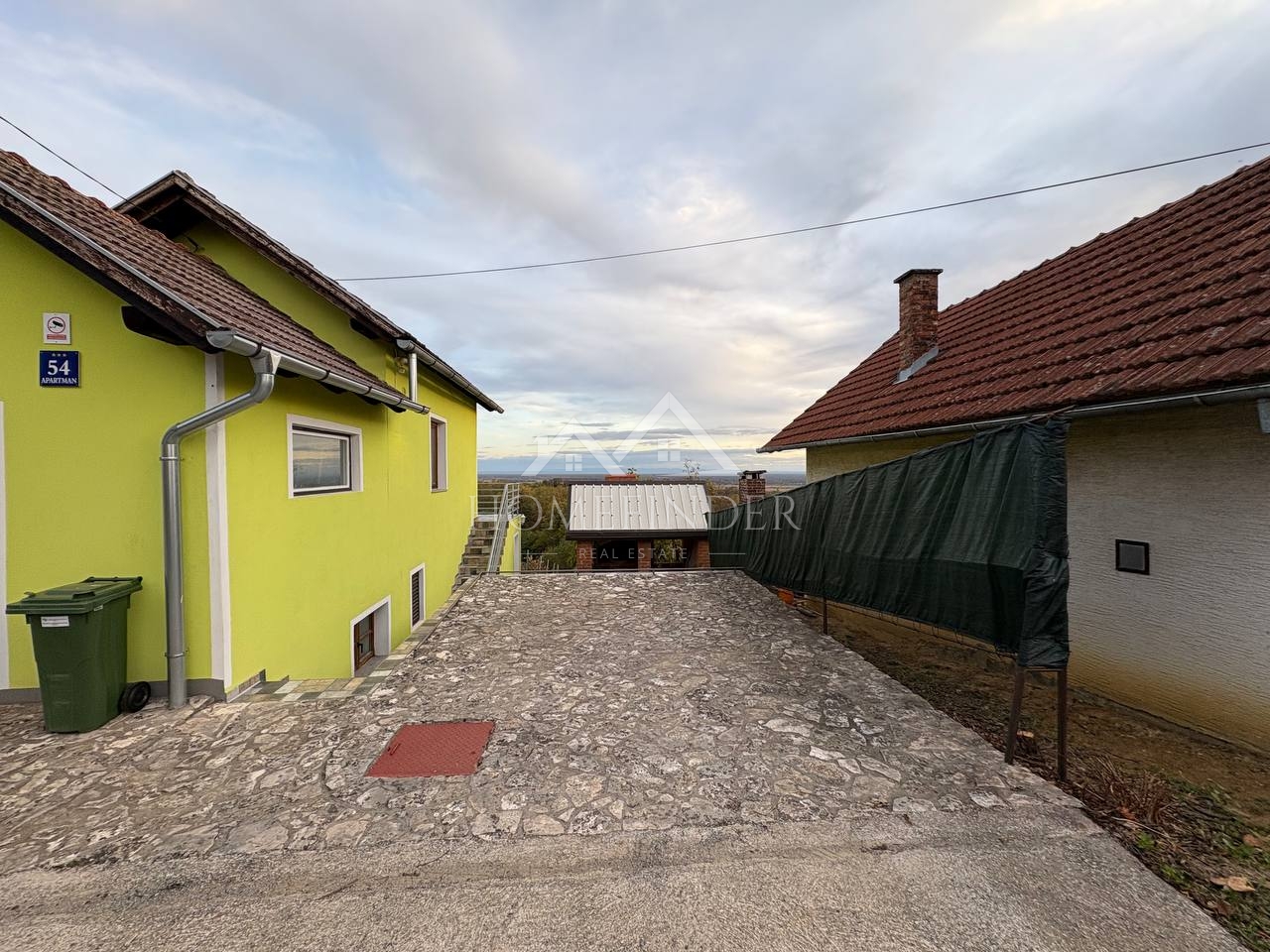 - Visoko prizemlje: apartman sa spavaćom sobom i kupaonicom, a ispred njega se nalazi prostrana terasa s koje se pruža prekrasan panoramski pogled na Moslavinu – savršeno mjesto za jutarnju kavu ili večernje opuštanje uz zalazak sunca.