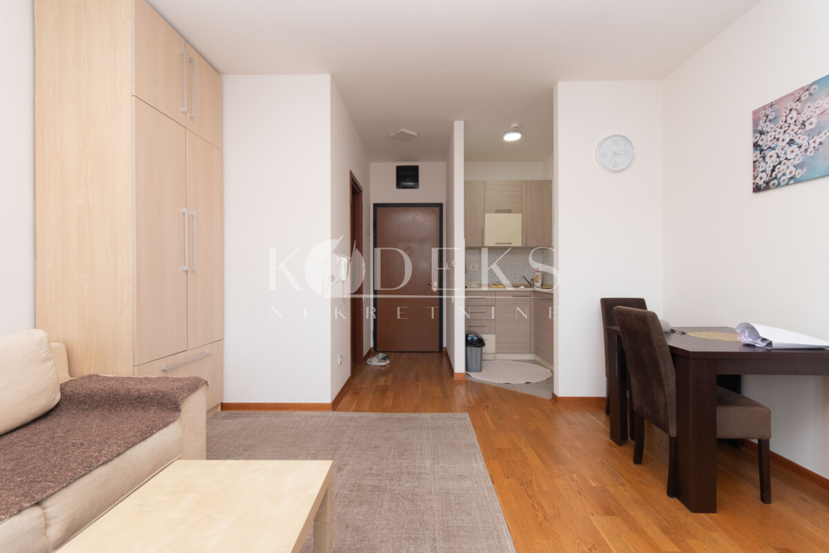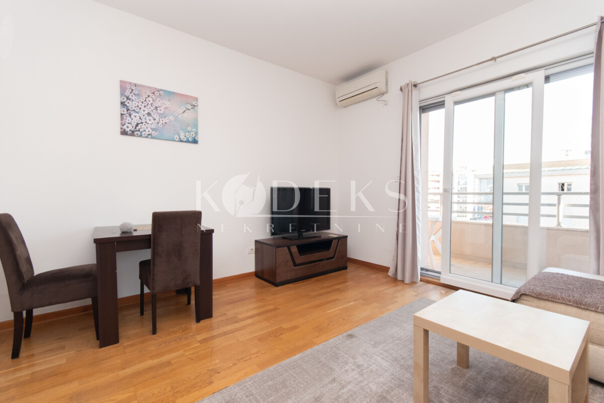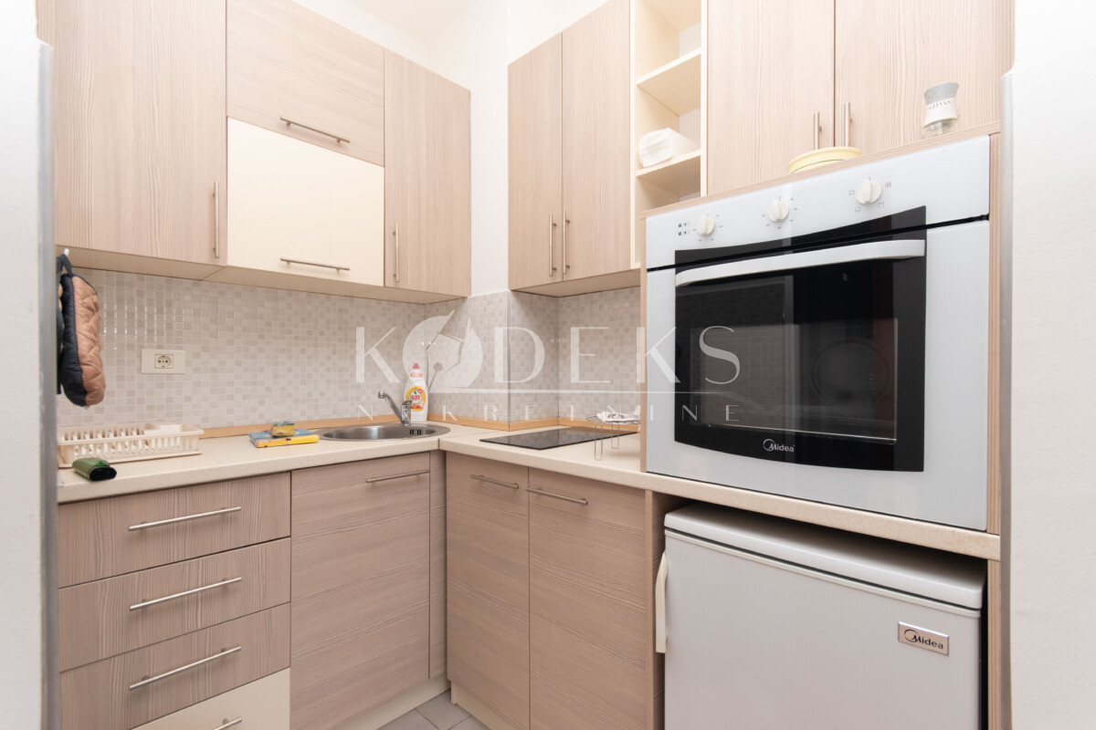 Opis: Izdaje se lijepo opremljena garsonjera smještena na petom spratu (posljednjem) stambene zgrade u Siti kvartu.