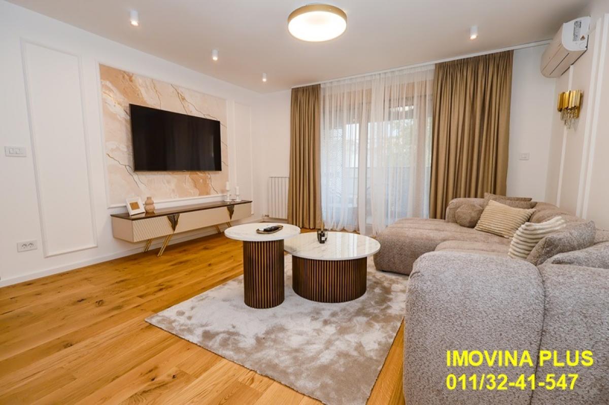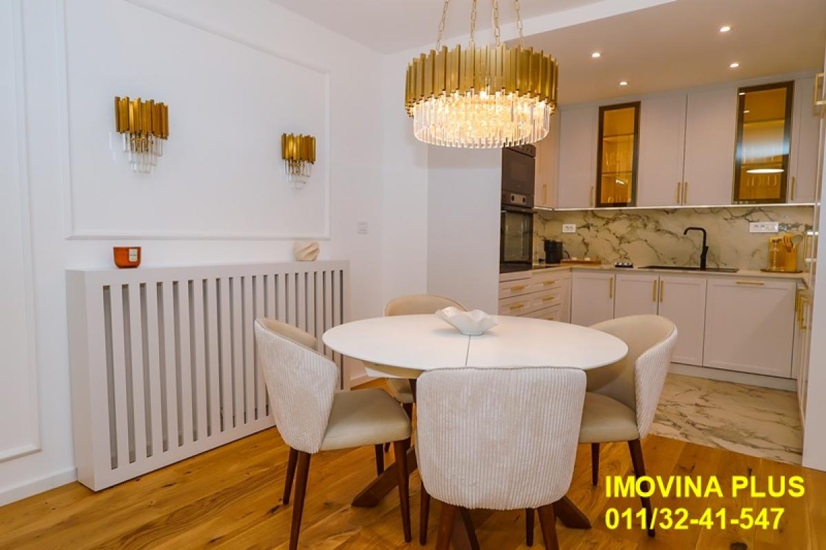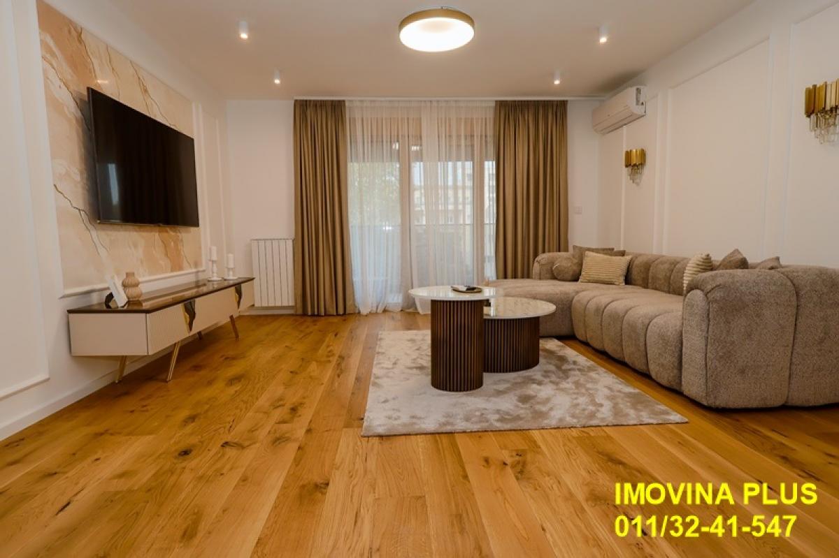 Stan je opremljen najkvalitetnijim materijalima i nameštajem – prirodni parket, dekorativna rasveta, dizajnerski komadi, ugradna rasveta i savremeni kuhinjski aparati najvišeg standarda. Enterijer odiše elegancijom i toplinom, a svaka prostorija pažljivo je uređena kako bi pružila maksimalan komfor i estetski doživljaj.