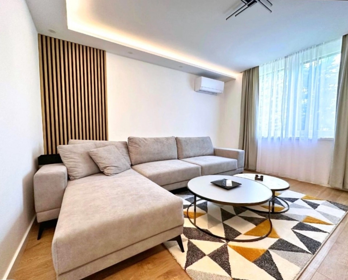 Sastoji se iz hodnika, dnevnog boravka sa kuhinjom i trpezarijom, spavaće sobe i kupatila. Vanjska stolarija je PVC, unutrašnja stolarija je drvena. Pod je parket i keramika. Grijanje je na struju, postoji opcija grijanja na plin. Posjeduje i klima uredjaj. Ulazna vrata su blindirana. Stan je kompleto renoviran i prodaje se namješten.