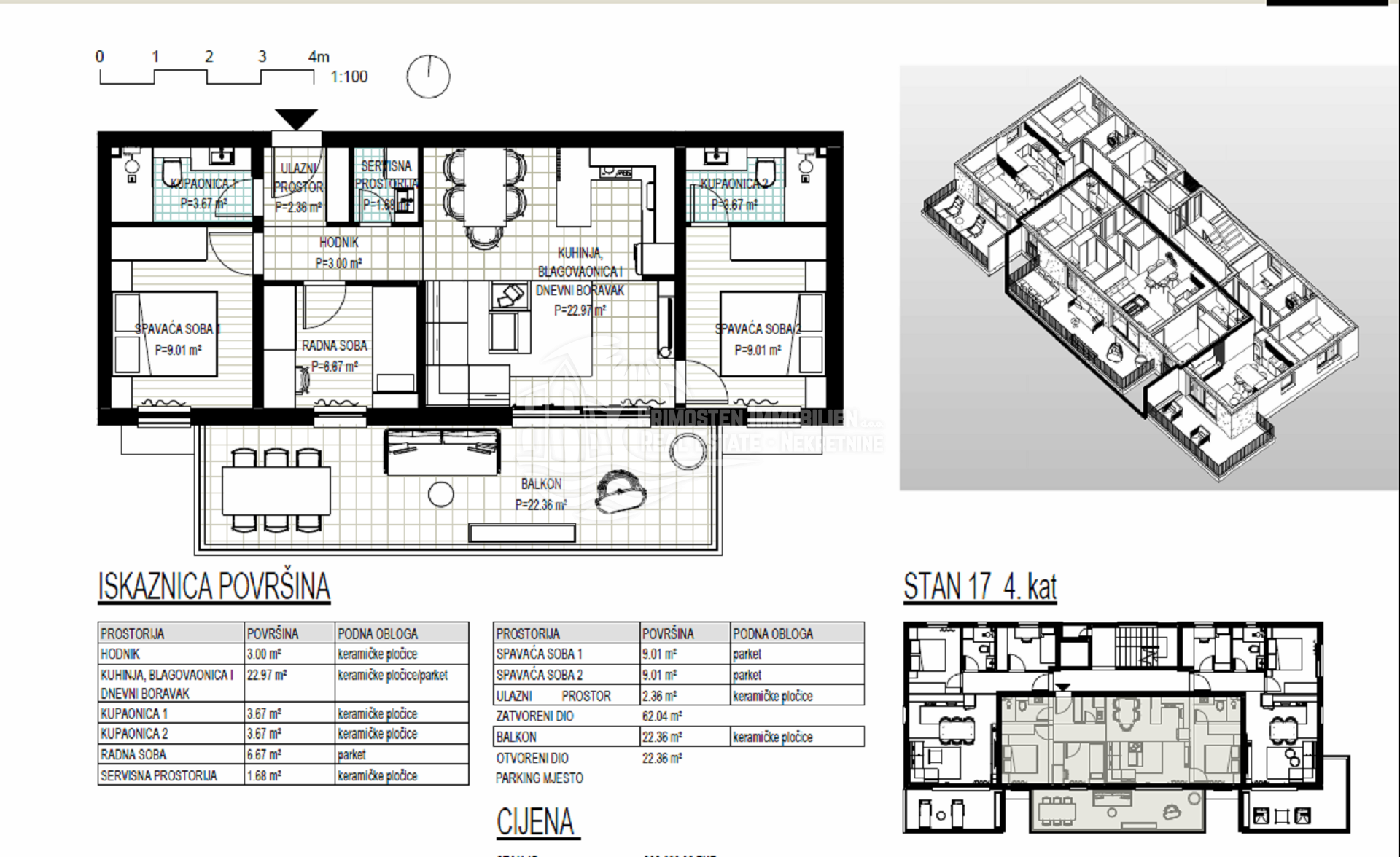 Opis: Stan S17 se nalazi na 4. katu stambene zgrade koja se sastoji od ukupno 18 stambenih jedinica. Zgrada se nalazi na izvrsnoj lokaciji blizu svih sadržaja i plaže.