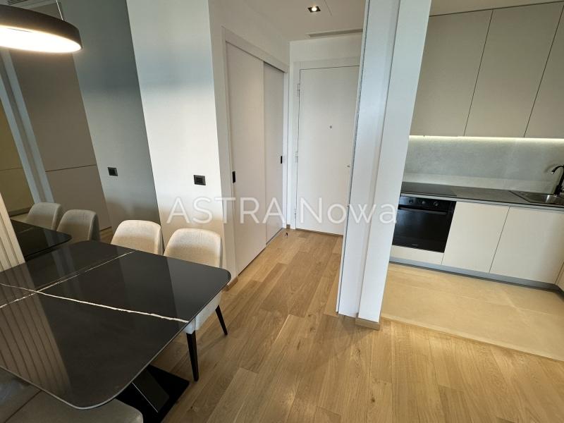 Opis: Moderan dvosoban kompletno opremljen stan u novom objektu "Novi Dorćol" u čijem se sastavu nalaze Spa centar i teretana.
