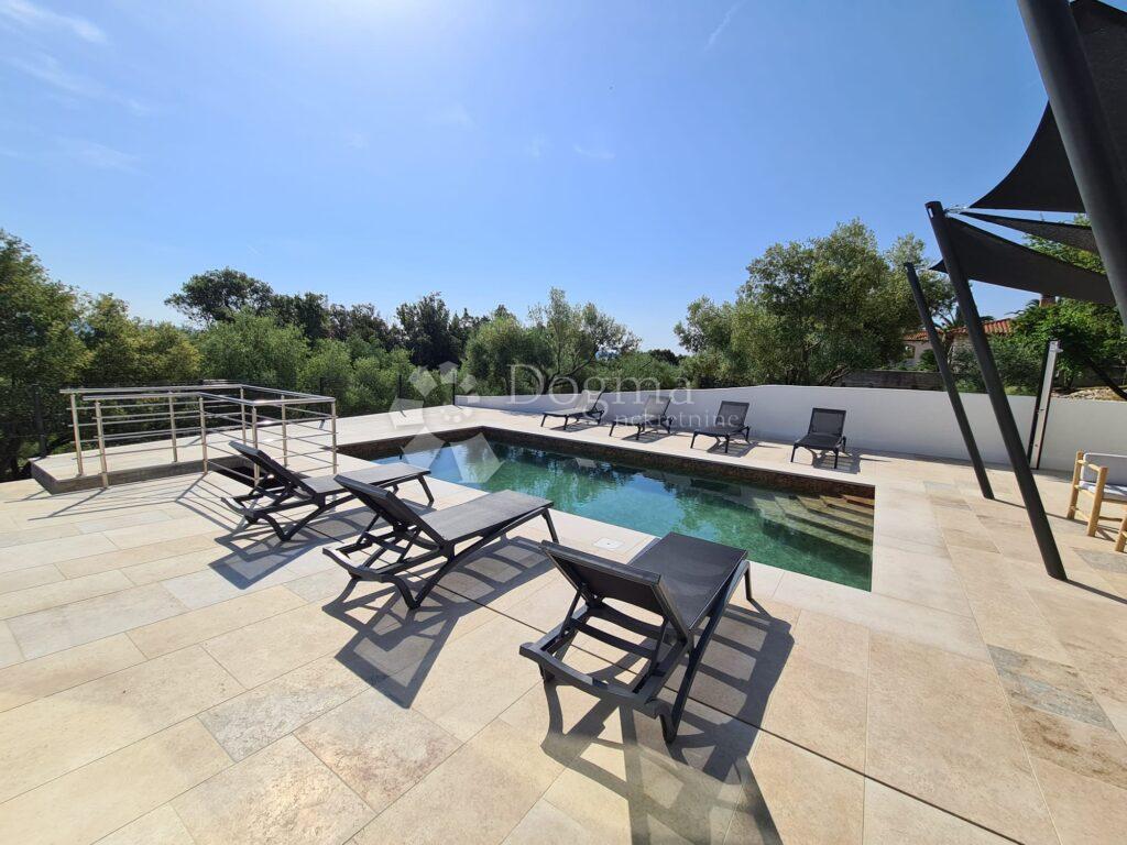 Minimalistički uređena i održavana okućnica, potpuno ograđena, sadrži bazen i sunčalište te ljetnu vanjsku garnituru za ugodna druženja.