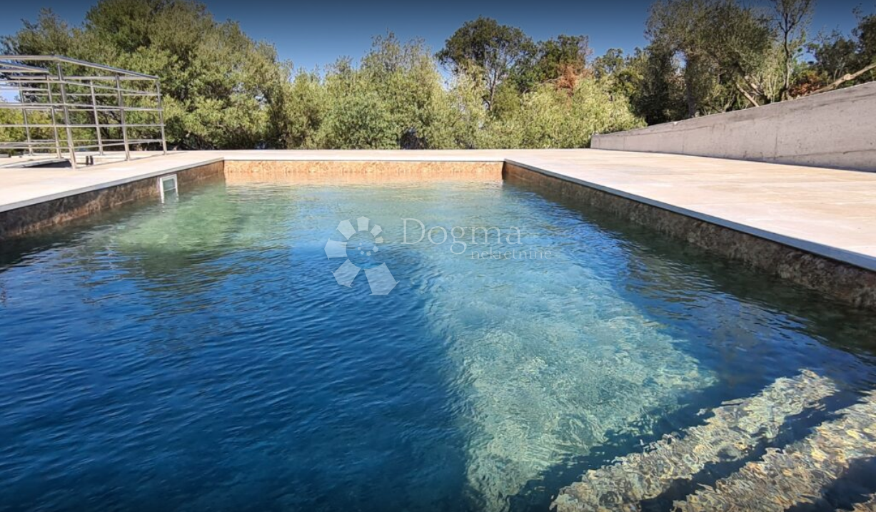 Okućnica je ambijentalno i hortikulturno uređena i ograđena a potpuni sklad pruža grijani bazen površine 38 m² sa sunčalištem.