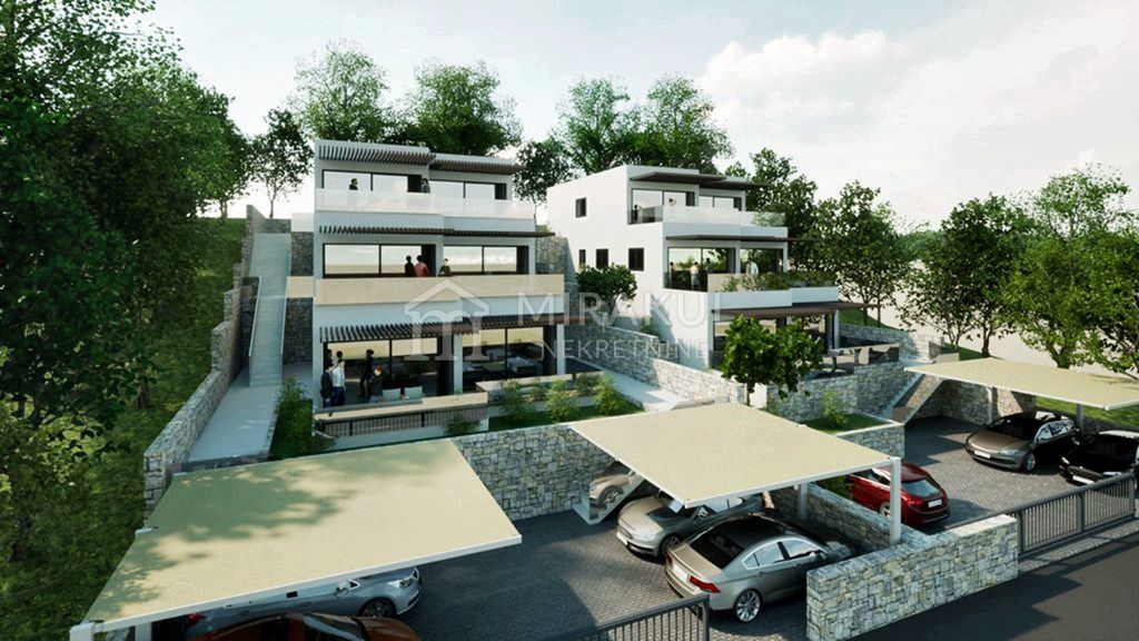 A1 trosoban stan u prizemlju sa vrtom,sastoji se od jedne spavaće sobe od 13,90m2, druge spavaće sobe 10,72m2, treće spavaće sobe 11,89 m2, kupaonice 9,37m2, predsoblje 3,37m2, hodnik 4,89m2, kuhinje s blagovaonicom 18,88m2,dnevnog boravka 15,37m2 , ukupne površine stana 88,39 m2,iz dnevnog boravka se izlazi na prekrasnu terasu sa pogledom na more od 30m2, parkirnog mjesta od 12,50 m2, sveukupne površine 114 m2. Cijena: 630.000,00-Eura.