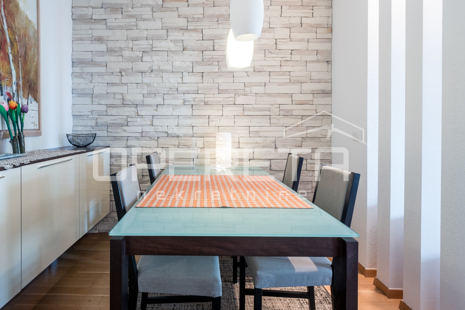 Opis: NAJAM, POTPUNO NAMJEŠTEN 4-SOBAN STAN, NOVI ZAGREB - ZAPAD, LANIŠTE, IZVRSNA LOKACIJA, NKP 96 M2 + GARAŽNO MJESTOIznajmljuje se prostran i kvalitetno uređen 4-soban stan, smješten na 4. katu zgrade s liftom, na atraktivnoj lokaciji, blizu Arene, Lanište. Orijentacije istok - zapad, stan je ugodan, prozračan i pun svjetla, sastoji se od ulaznog hodnika s ugradbenim ormarima, prostranog dnevnog boravka s blagovaonicom i izlazom na lođu, kuhinje, 3 spavaće/radne sobe ( 1 s izlazom na drugu lođu), 2 kupaonice s wc-om te zasebne prostorije koja služi kao spremište/walk-in ormar. Uz stan je moguće iznajmiti i garažno parkirno mjesto na etaži -1, odmah do lifta, po cijeni od 100 eur/mj.. Pušenje i kućni ljubimci nisu dozvoljeni.Potpuno namješten, uredan, čist i održavan te opremljen vrhunskom opremom ( kvalitetno posuđe i dr. ostaju na korištenje najmoprimcu).Dostupan od 1.mj 2026.