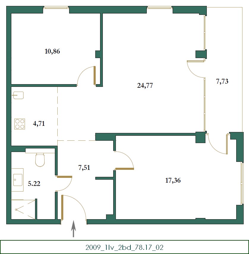 Stan se nalazi na prvom spratu i površine je 78.17 m2, po strukturi dvosoban stan.