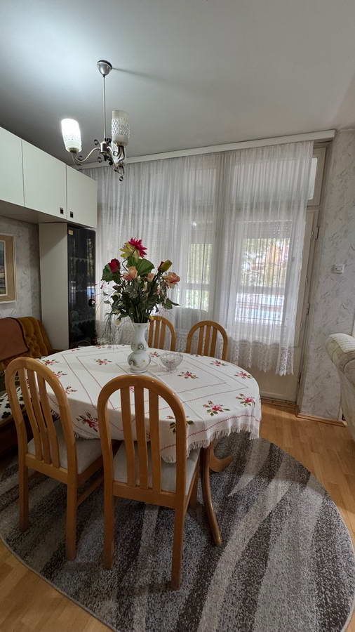 Opis: Lesnina - Dvosoban stan površine 52m2 + terasa, deo vešeraja na spratu i podrumski prostor. Stan se nalazi na prvom od četiri sprata zgrade bez lifta. CG je odjavljeno i plaća se samo održavanje. Moguće je ponovno priključenje bez ikakvog plaćanja. Na podovima je laminat i keramika. PVC spoljna stolarija sa roletnama i sigurnosna vrata. Zatvorena terasa. Klima. Interfon. Uknjižen.