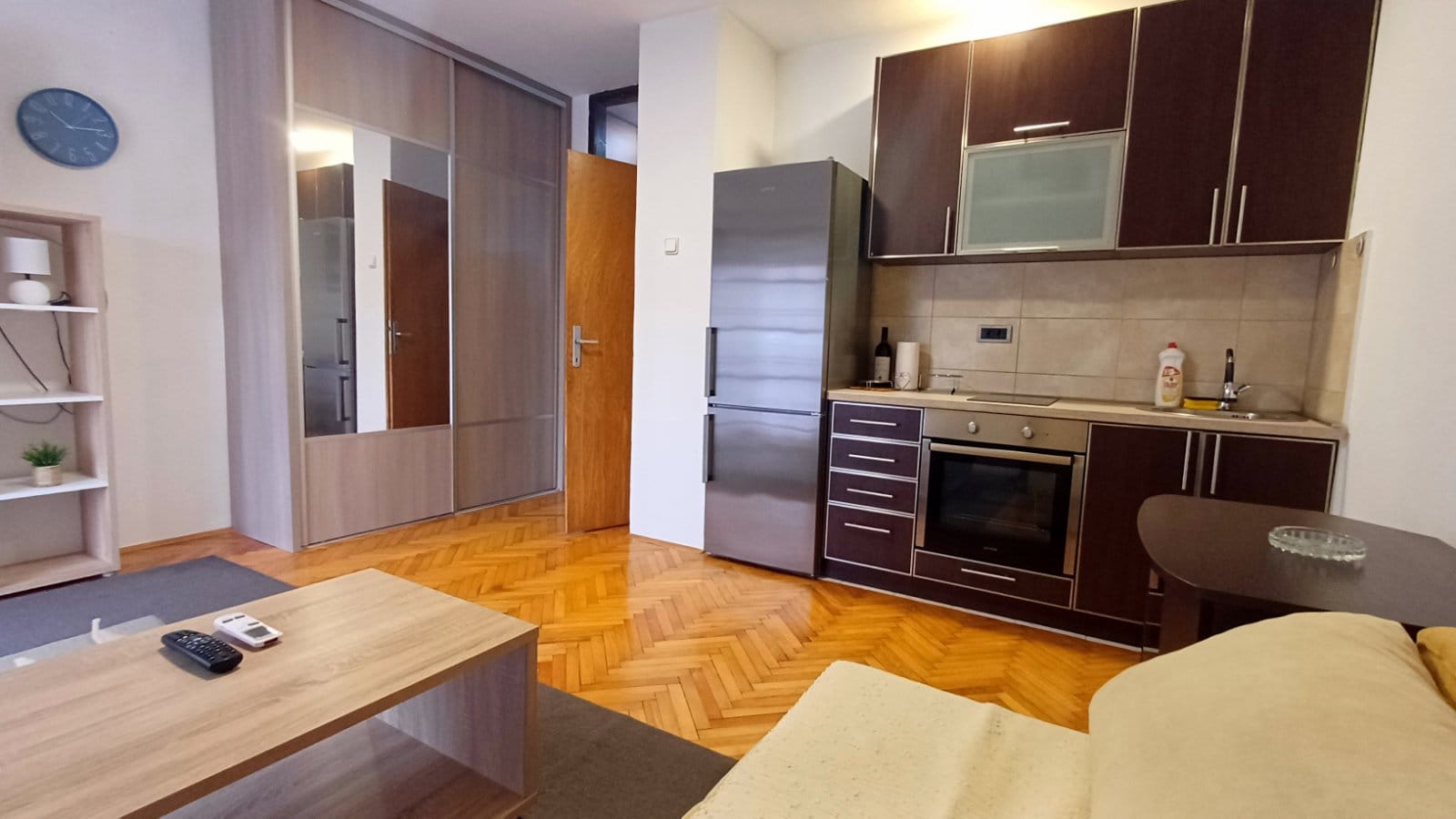 Izdaje se namještena garsonjera od 27m2 na Malom Brdu na drugom spratu. Desestak minuta hoda od centra Podgorice. Mjesečna renta je 300€.