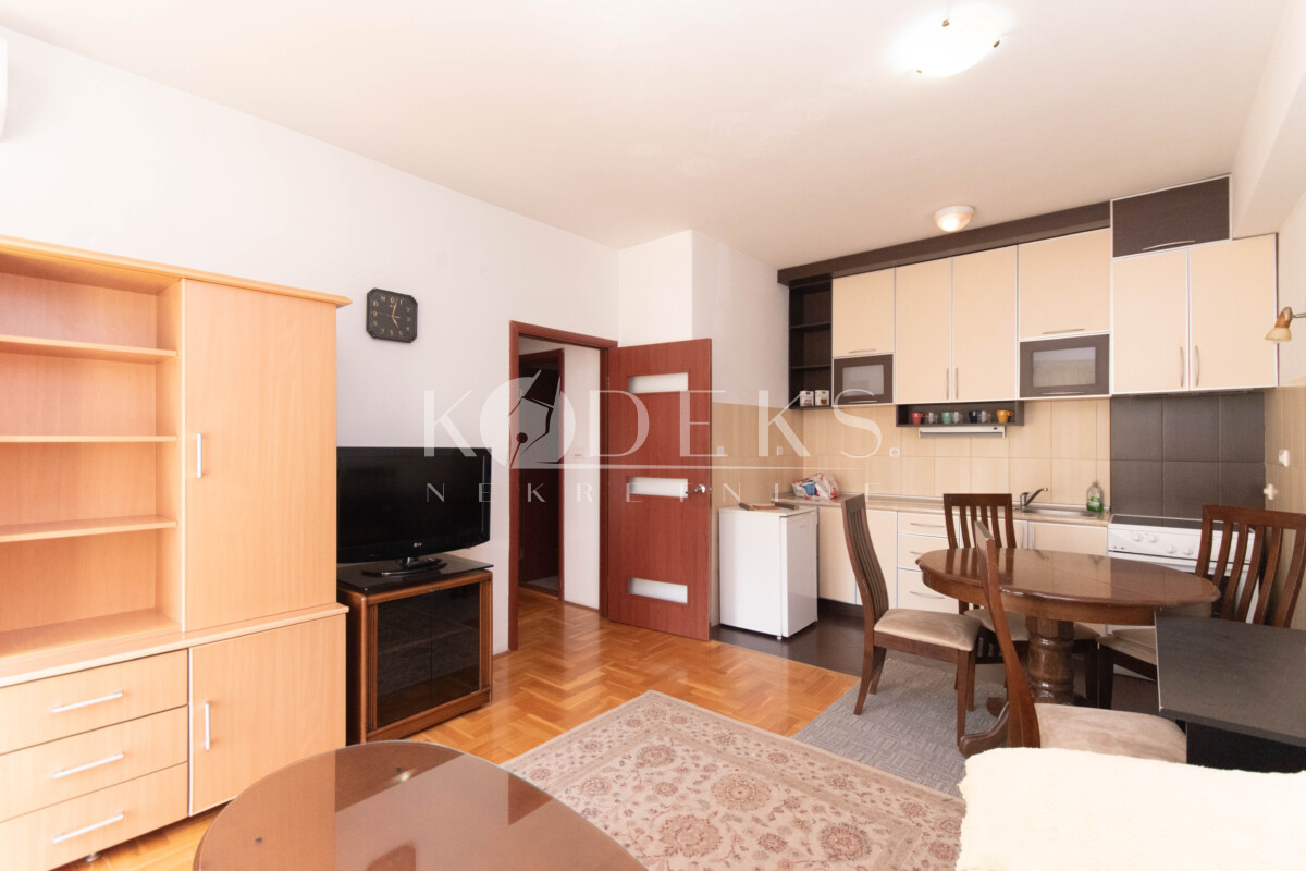Opis: Izdaje se lijepo namješten jednosoban stan smješten na petom spratu (nije posljednji) stambene zgrade u Bloku 9.