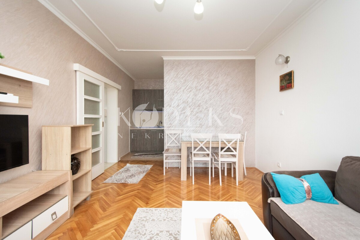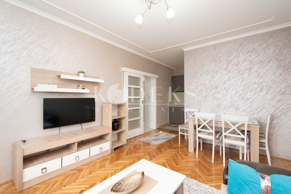 Opis: Izdaje se namješten jednosoban stan smješten na petom spratu (nije posljednji) stambene zgrade kod Voli marketa na Starom aerodromu.