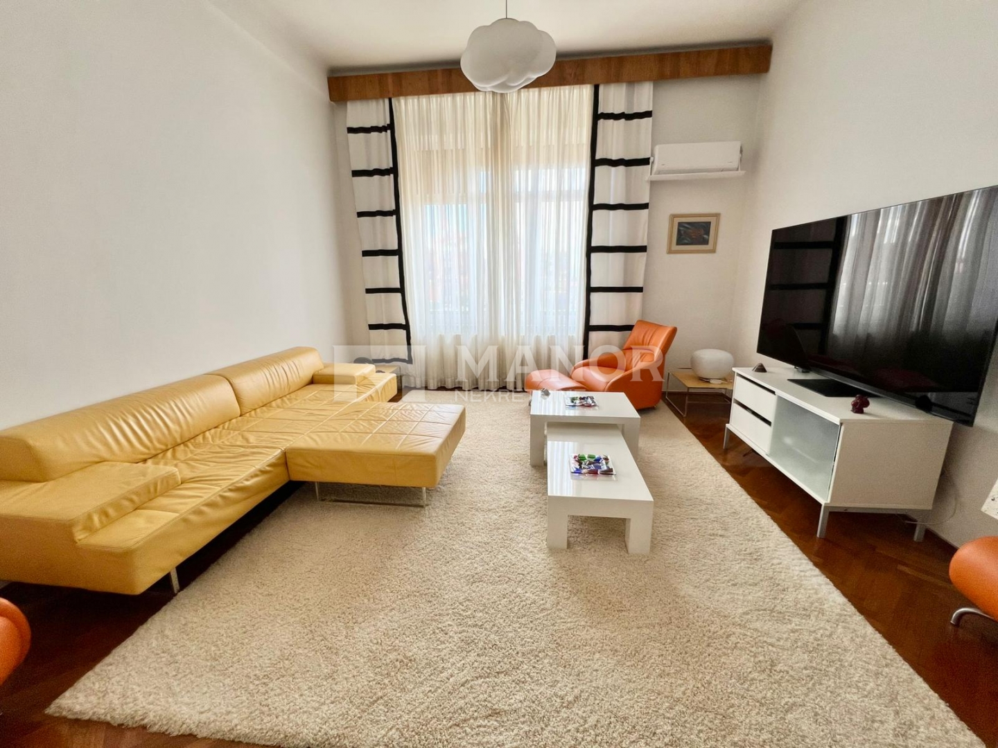 Opis: Manor predstavlja stan površine 100,45 m² s balkonom. Osim što se ističe zanimljivim rasporedom prostorija, nalazi se na nižem katu, prostran je, vrlo svijetao i ugodan za boravak. Posebna prednost ove nekretnine su dva potpuno odvojena ulaza, što omogućuje da se radna soba koristi i kao ured ili poslovni prostor.