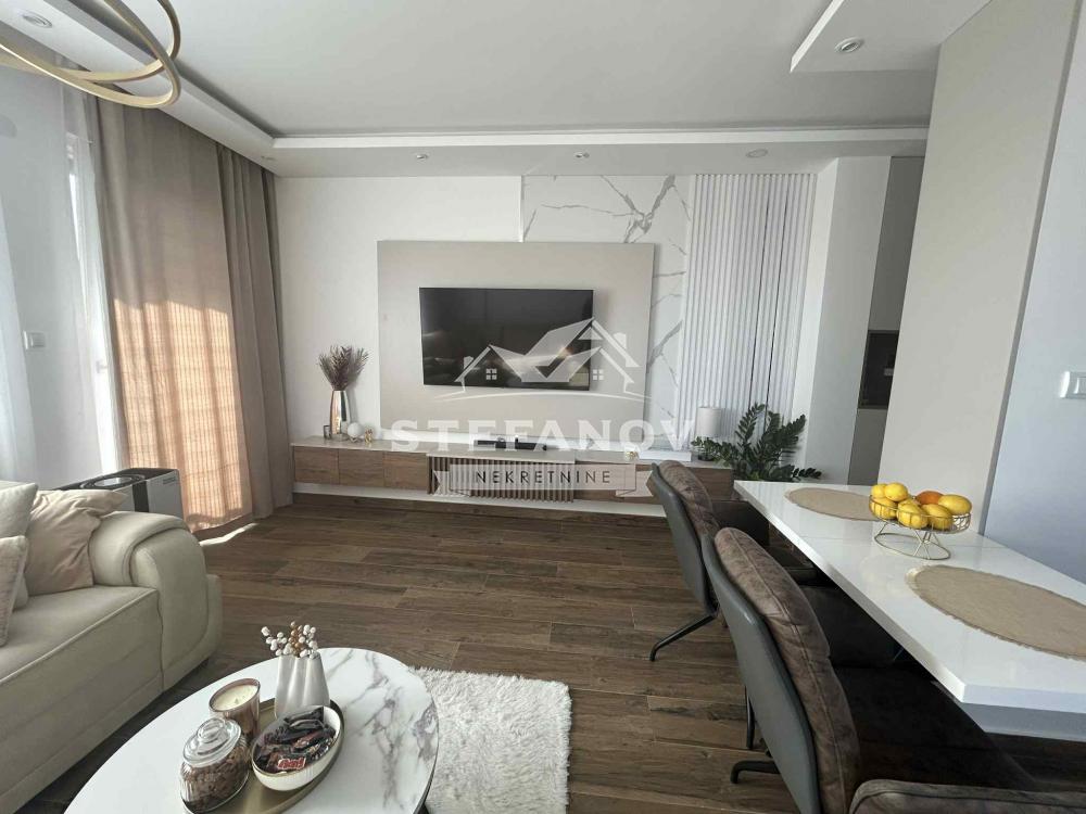 Opis: Na prodaju elegantno uređen dvosoban stan u novogradnji površine 42 m2 na IV spratu zgrade sa liftom. Stan se nalazi na Lesnini i sastoji se od hodnika, prostranog dnevnog boravka koji je spojen sa kuhinjom i trpezarijom u otvorenom konceptu sa izlazom na terasu, spavaće sobe i kupatila. Zahvaljujući podnom grejanju prostor je uvek topao i prijatan, troškovi minimalni a udobnost maksimalna tokom cele godine. U stanu spušteni plafoni i prodaje se sa kompletnim ugradnim nameštajem koji je rađen po meri i tehnikom koja je pod garancijom. Lokacjija stana je izuzetna, u blizini svih važnih sadržaja, prodavnica, škola, vtića, javnog prevoza. Idealna nekretnina za porodičan život ili kao dugoročna investicija. U sklopu zgrade postoji i dečije igralište. Jedan vlasnik.