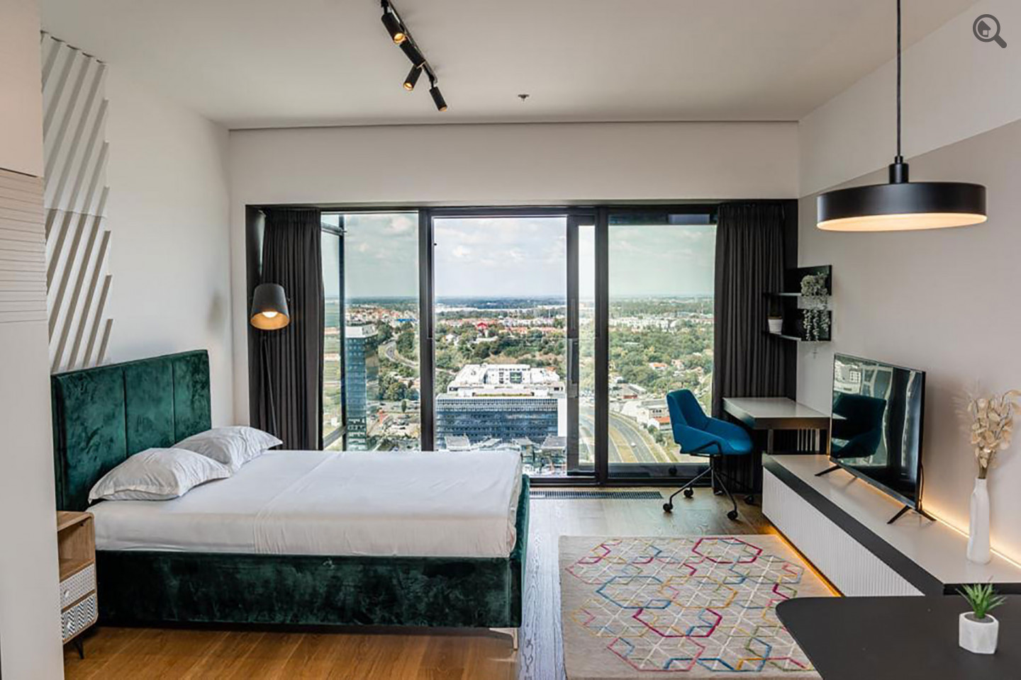 Opis: Apartman West 66 se nalazi u novoizgradjenoj West Tower Kuli koja se nalazi u sklopu kompleksa West 65. Površine je 35kvm i namenjen je za boravak do 2 osobe. Apartman se nalazi na 24 spratu sa kojeg se pruža neverovatni pogled na ceo Novi Beograd. Luksuzno opremljen apartman sastoji se od dela za spavanje koji poseduje veliki francuski ležaj. Spavaći deo je pregradjen od dnevne sobe pa gosti imaju mogunost da kliznim vratima zatvore ta dva prostora. Dnevni boravak poseduje udobnu sofu. U sklopu dnevnog boravka nalazi se i kompletno opremljena kuhinja koja poseduje indukcionu ploču, rernu, ugradni frizider i pult sa 2 barske stolice. Kupatilo je moderno i poseduje tuš kabinu, kao i prostoriju sa veš mašinom. Gostima su na raspolaganju besplatan WiFi internet, LCD TV sa kablovskim kanalima, čisti peškiri i posteljina. Dodatna pogodnost su mnoštvo restorana i kafica, tržni centar, prodavnice i apoteka u blizini apartmana. Apartman u ponudi ima i obezbedjenu privatnu garažu koja se nalazi u sklopu kule za sve goste koji dolaze sopstvenim vozilom i doplata za garazu je 10e po danu. Dobrodošli!