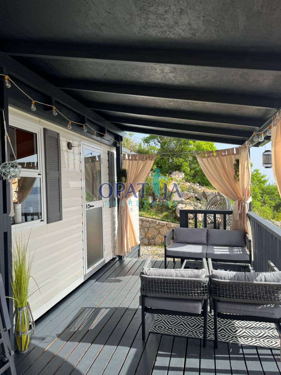 Površine je 35 m² i ima dvije spavaće sobe, kupaonicu, dnevni boravak i blagovaonicu te natkrivenu terasu s hidromasažnom kadom, vanjskim tušem, plinskim i električnim roštiljem te prekrasnim pogledom.