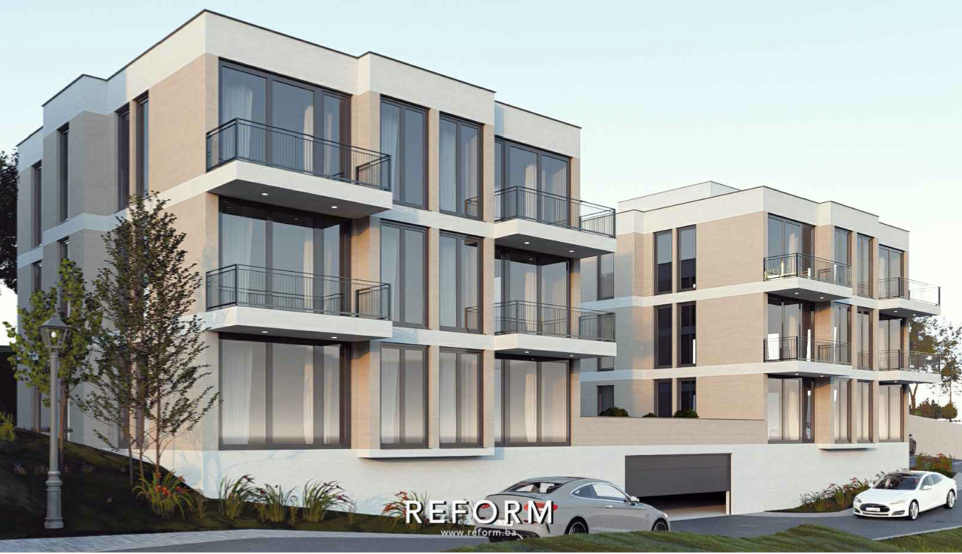 Projektovana spratnost objekta iznosi P+S+P1. Projektom su predviđena dva objekta sa zajedničkom podrumskom garažom i zajedničkim platoom za pješake. Dva stana iz prizemlja imat će direktan pristup pješačkom platou iz dnevnog boravka. Objekti su u osnovi pravilnog oblika, sa blagim izbočenim djelovima. Podrumskoj garaži se pristupa sa sjverne strane parcele, sa novoprojektovane saobračajnice, u kojoj se pored parking prostora nalazi tehnička prostorija, vertikalna komunikacije te ostave za stanare.