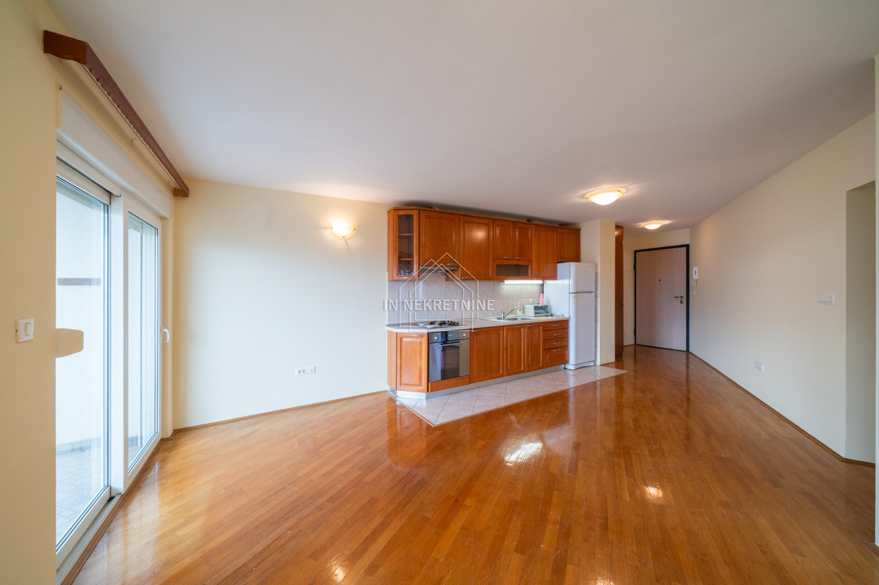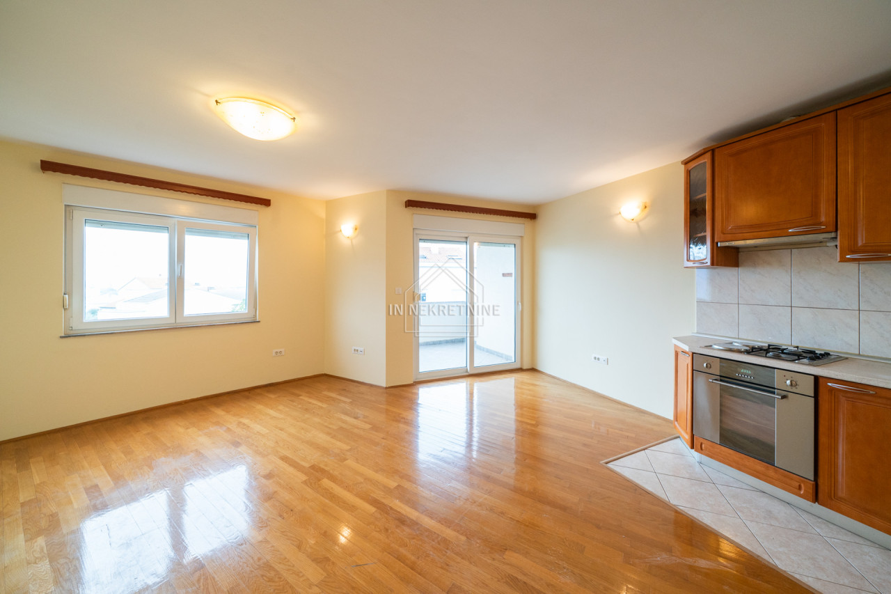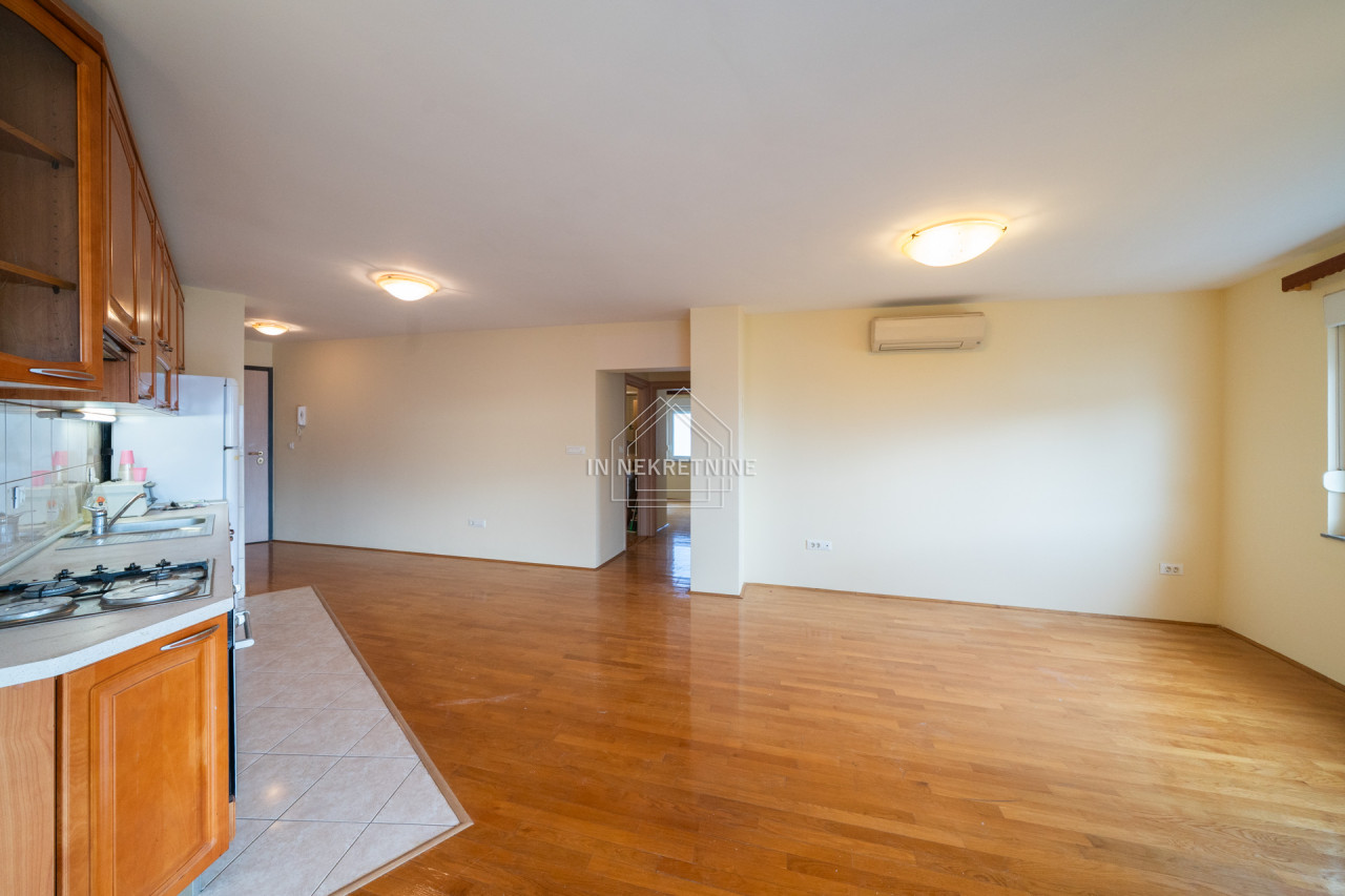 Stan se prodaje djelomično namješten, s kuhinjom i ugradbenim ormarima.