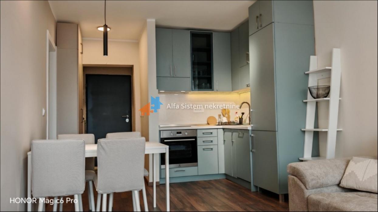 Sastoji se od dve sobe, kuhinje, kupatila i balkona. Grejanje je centralno, a topla voda se dobija preko bojlera. U blizini se nalaze autobuska i trolejbuska stanica. Zgrada se nalazi u pešačkoj zoni i ima mogućnost korišćenja javnog parkinga.