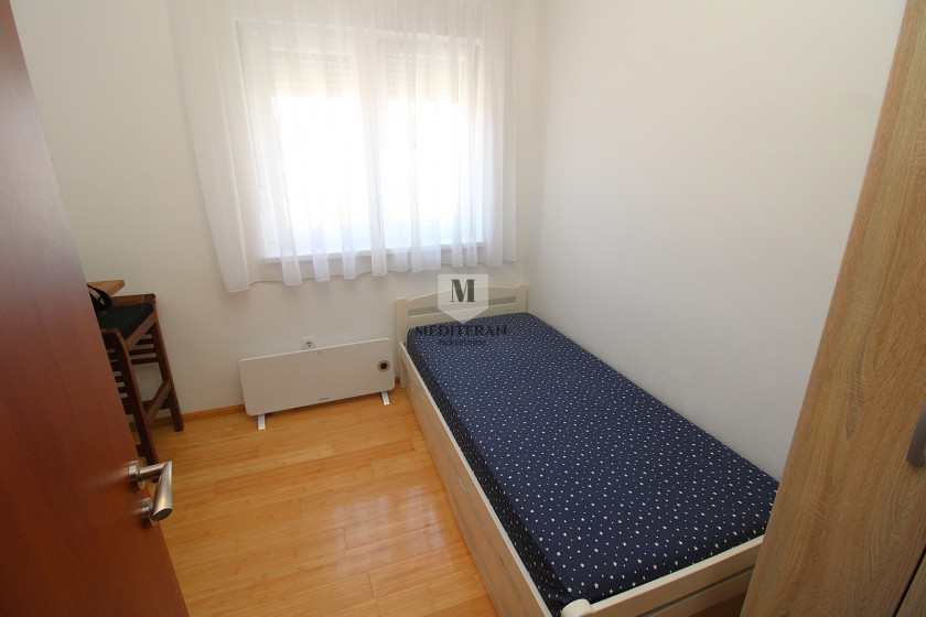 Raspored prostorija: ulazni hodnik,kupatilo,toalet,dnevni boravak sa kuhinjom,dvije spavaće sobe,velika terasa sa pogledom na more i ulaz u Bokokotorski zaliv.