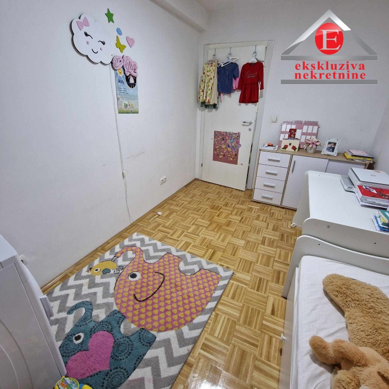 Sastoji se od dnevnog boravka sa kuhinjom, trpezarijom i izlazom na balkon, dječije sobe, spavaće sobe, hodnika i kupatila.