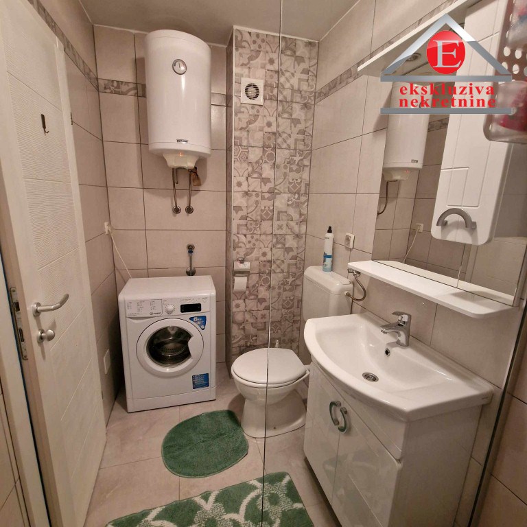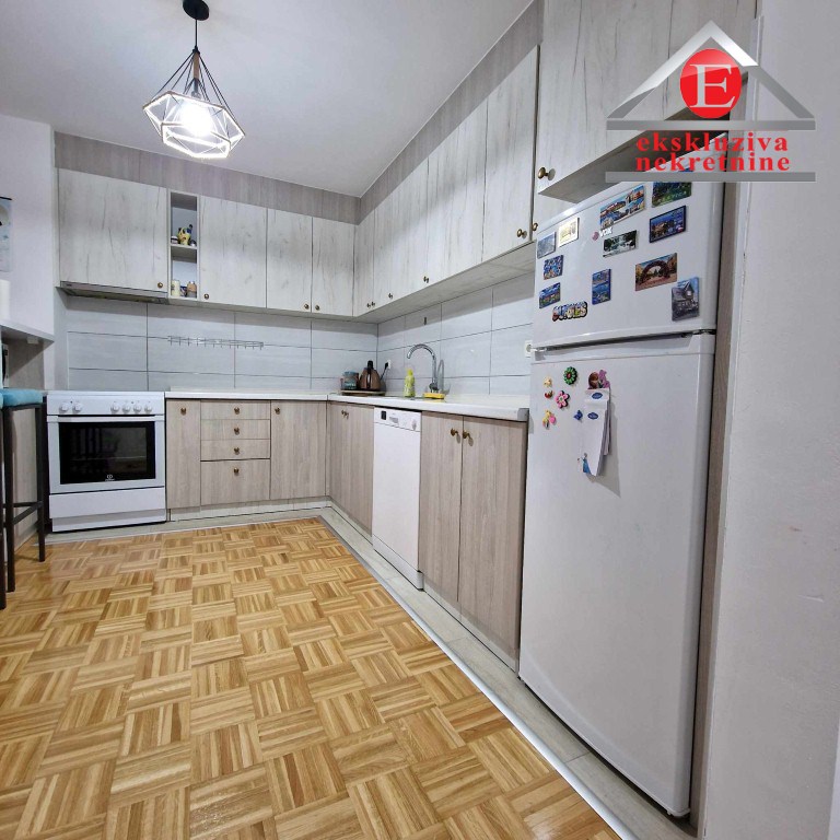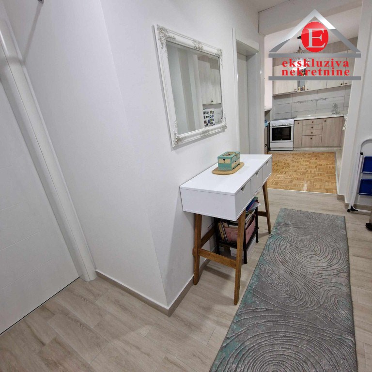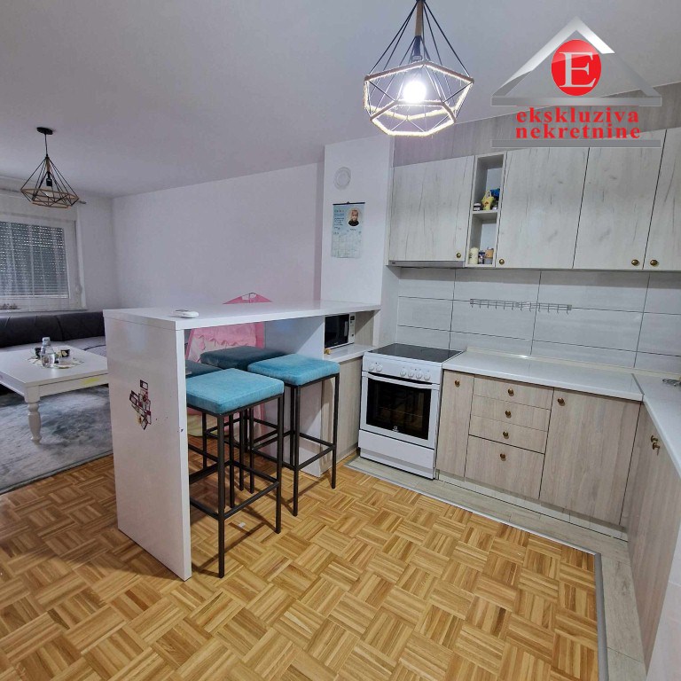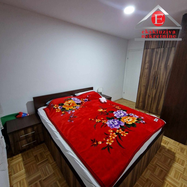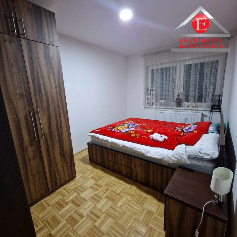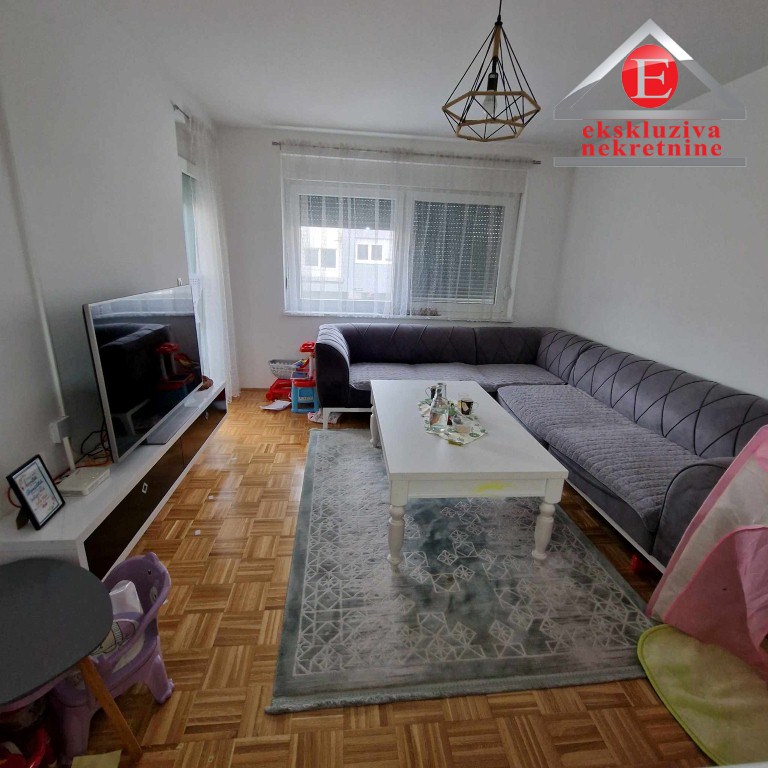 Opis: Namješten trosoban stan površine 59 m2, na I spratu stambene zgrade novije gradnje.