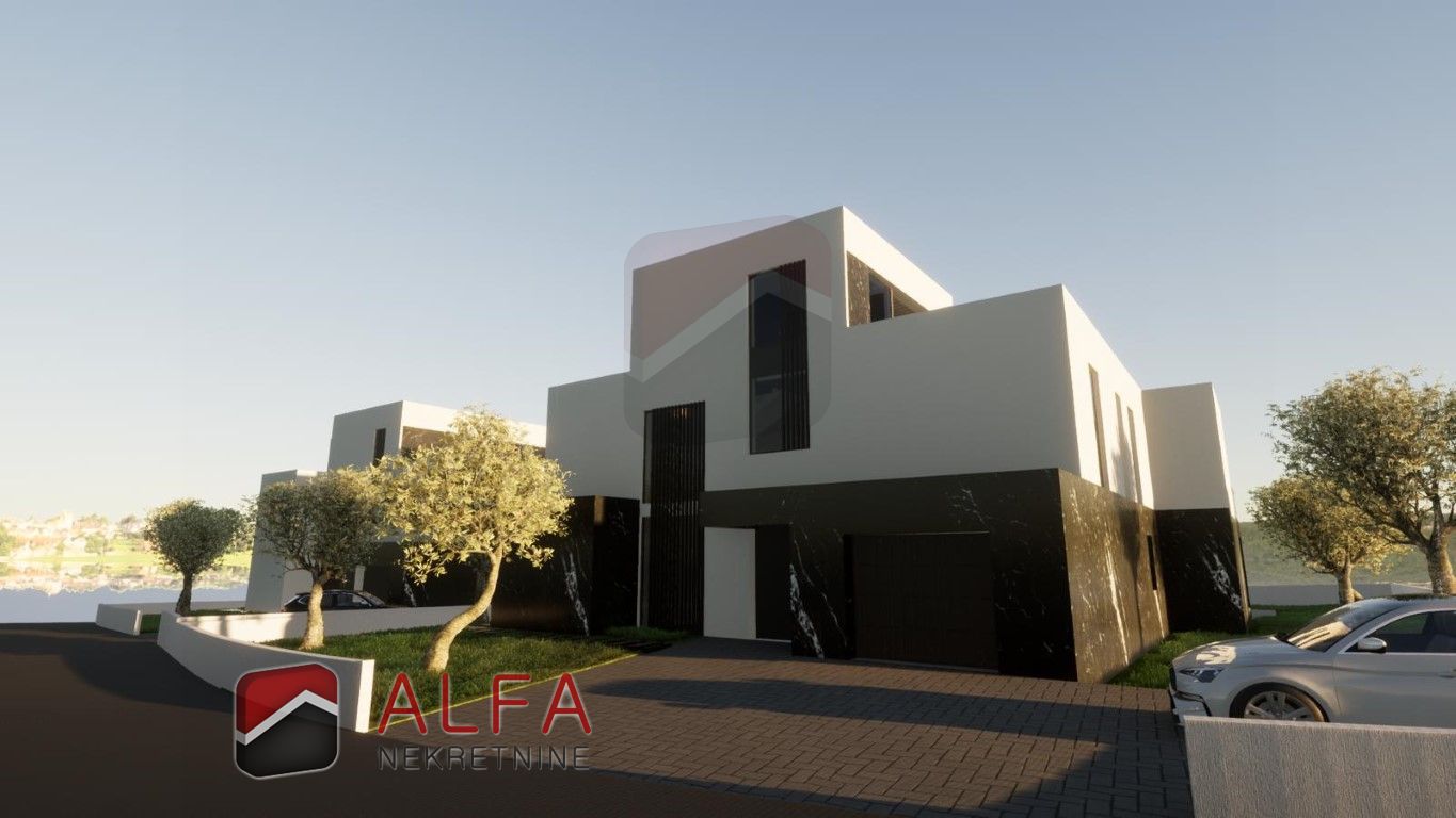 Opis: Vodice – prodaje se moderna vila atraktivnog dizajna i arhitekture, s bazenom, garažom i otvorenim panoramskim pogledom na more. Trenutno je trenutno u izgradnji. Ima bazen, garažu i otvoren panoramski pogled prema moru. Smještena je na mirnoj lokaciji, 1.200 metara od mora i pruža prekrasan panoramski pogled na more.
