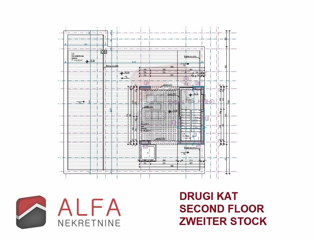- Sa prvog kata se unutarnjim stubištem dolazi do drugog kata gdje se nalazi samo hodnik te velika prostrana krovna terasa koja se prostire po cijeloj etaži i koja ima zaista fantastičan panoramski pogled na more.