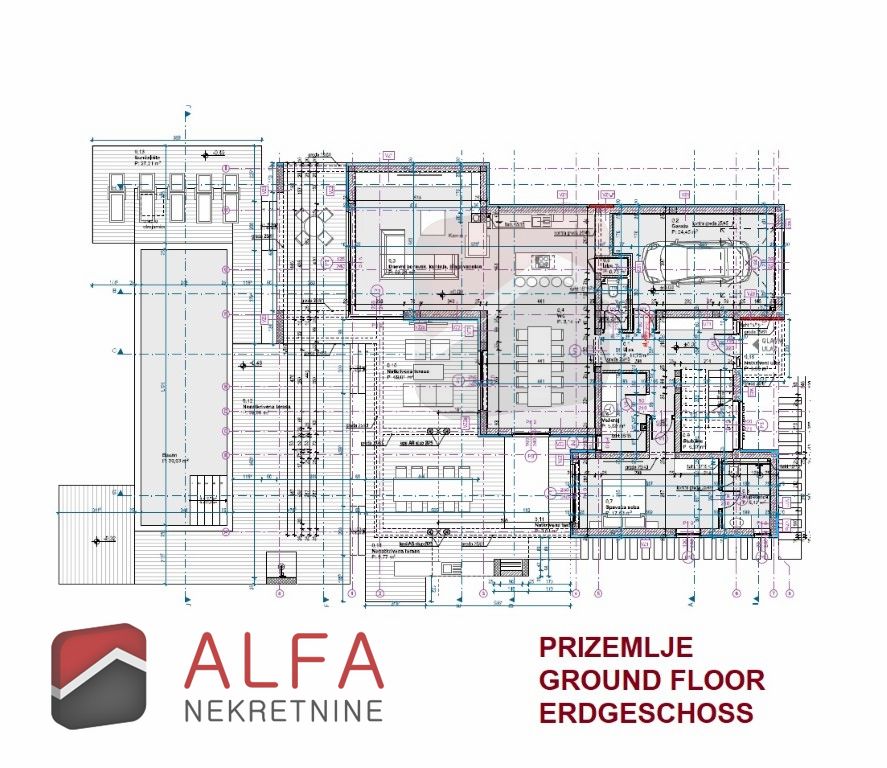 - U razini prizemlja nalazi se i garaža iz koje se može ući u unutrašnjost kuće.