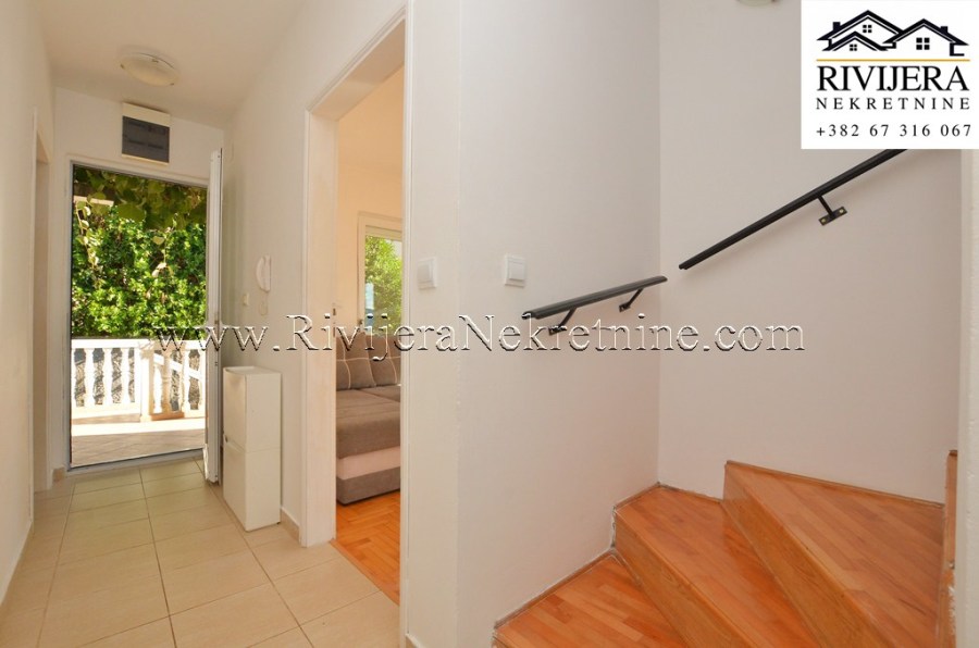 Opis: Dvojna kuca prvi red do mora Savina Herceg Novi. Povrsina 141m2, kuca se sastoji iz dva stana, jednosoban stan povrsine 34m2 i trosoban duplex stan 72m2. Pomocni objekat garaza 35m2 ( moze da bude poslovni prostor povrsine. Prizemlje: dvorisna terasa, ulazni hodnik, spavaca soba, kupatilo, dnevna soba sa kuhinjom. Prvi sprat: ulazni hodnik, dnevna soba, kuhinja sa trpezarijom, (unutrasnje stepenice) Potkrovlje: mali hodnik, tri spavace sobe, dvije male terase, kupatilo. Atraktivna lokacija u blizini mora. Cijena : 650.000€