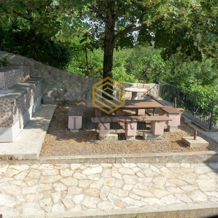 Ima izvorsku vodu. Na placu se nalazi i sala za bilijar I stolni tenis povrsine preko 30m2. U dvoristu ima mjesto za rostij, igraliste za djecu kao i vocnjak sa jabukama, tresnjama, smokvama, kruskama... Udaljena je 13km od centra grada, nadmorska visina je 636 m2 i ima predivan pogled na Podgoricu i skadarsko jezero.