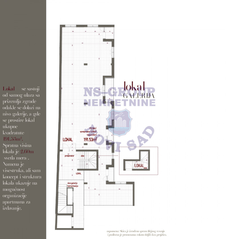 Opis: Ekskluzivna ponuda u izgradnji na prestižnoj lokaciji – Telep, u neposrednoj blizini Limana 4! U pitanju je moderan stambeno-poslovni objekat elegantne arhitekture koji se sastoji od prizemlja, galerije, dva sprata i potkrovlja. Gradnju izvodi renomirani i pouzdani investitor poznat po vrhunskom kvalitetu izvedenih radova i upotrebi najkvalitetnijih materijala. Lokal se nalazi na galeriji, ulaz je direktno iz hodnika glavnog ulaza i ceo je u portalima prema ulici. Početak radova planiran je za februar 2026. godine, a završetak se očekuje u roku od 15 meseci. Kupcima je na raspolaganju mogućnost kupovine garažnih mesta u suterenu zgrade, kao i parking mesta u dvorištu. Cena je iskazana sa uračunatim PDV-om. Za više informacija, kontaktirajte nas.