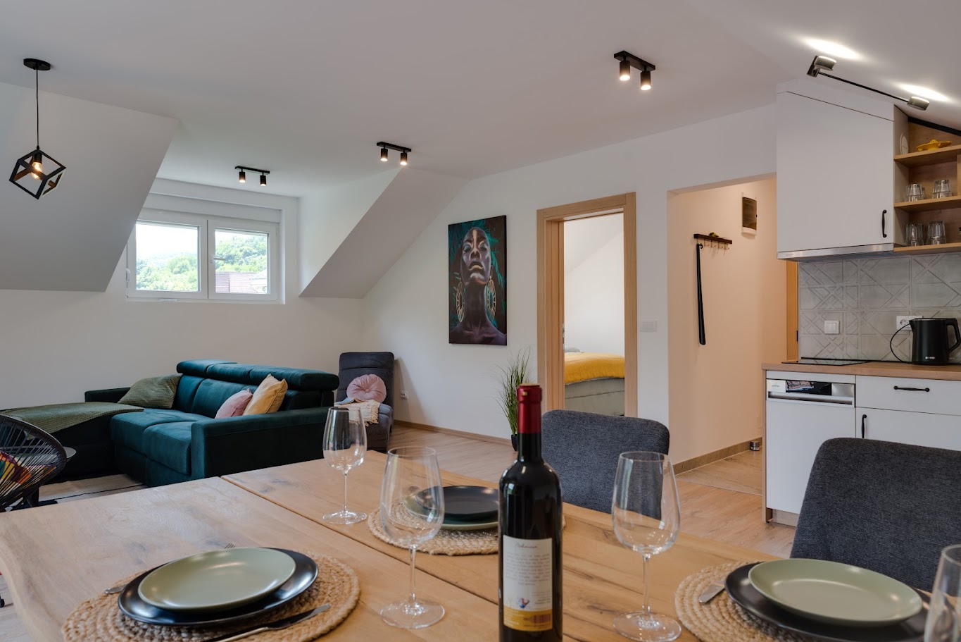 Opis: Vila Dara nudi više smeštajnih jedinica, među kojima se izdvaja moderno opremljen apartman Vila Dara 5. Površine čak 75m², ovaj dvosoban apartman idealan je za udoban boravak do četiri odrasle osobe. Sastoji se od kuhinje sa trpezarijskim delom, prostranog dnevnog boravka sa ugaonom garniturom koja se razvlači i može služiti kao dodatni ležaj, odvojene spavaće sobe sa bračnim krevetom, kupatila sa tuš kabinom, kao i velike terase sa koje se pruža prelep pogled na dvorište vile. Od dodatnih pogodnosti, gostima su na raspolaganju besplatan WiFi, flat screen TV sa kablovskim kanalima, laptop, kao i čisti peškiri i posteljina. Na zahtev gostiju, domaćini mogu obezbediti i krevetac za decu. Apartman se nalazi na adresi Bulevar Srpskih Ratnika br. 55, dok je centar Vrnjačke Banje udaljen manje od 10 minuta vožnje automobilom. U neposrednoj blizini nalaze se gradski bazen, restorani i prodavnice. Za goste koji dolaze sopstvenim prevozom obezbeđeno je privatno parking mesto u okviru objekta. Dobrodošli u apartman Vila Dara 5!